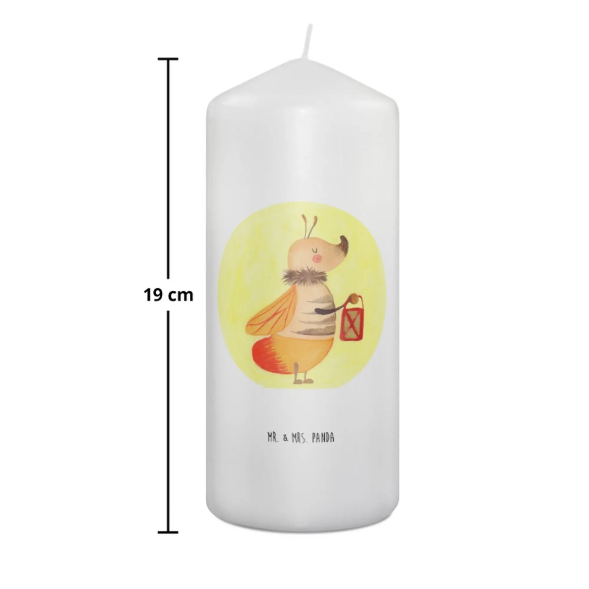 Die Kerze ist aus hochwertigem Paraffinwachs gefertigt, sorgt für eine ultralange Brenndauer und erledigt ihren Dienst mit einem sanften, warmen Licht. Sie ist nicht nur ideal als Taufgeschenk, sondern auch für Jubiläen oder einfach, um jemandem eine Freude zu machen. Das Glühwürmchen-Motiv gehört zur ‚Small World‘ Kollektion, die durch ihre liebevoll gestalteten Tiermotive und lustigen Sprüche besticht. Jedes Motiv wurde mit viel Hingabe von Mrs. Panda handgezeichnet und macht die Kerze zu einem echten Blickfang.