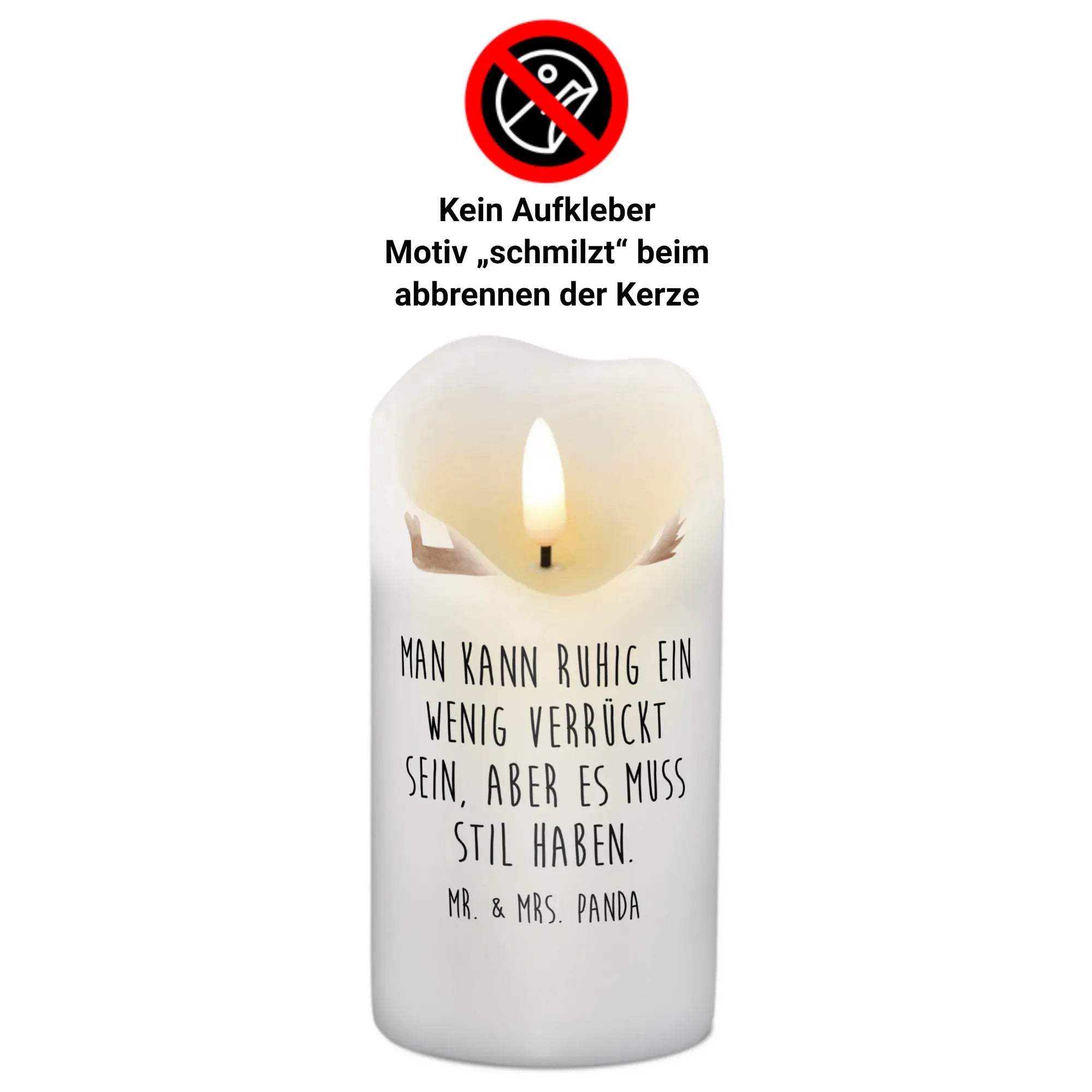 Mit ihrem abgebildeten Spruch "Man kann ruhig ein wenig verrückt sein, aber es muss Stil haben" bringt die Kerze zudem eine humorvolle Note ins Spiel und passt perfekt zu den Ansprüchen von stilvollen Hundebesitzern.