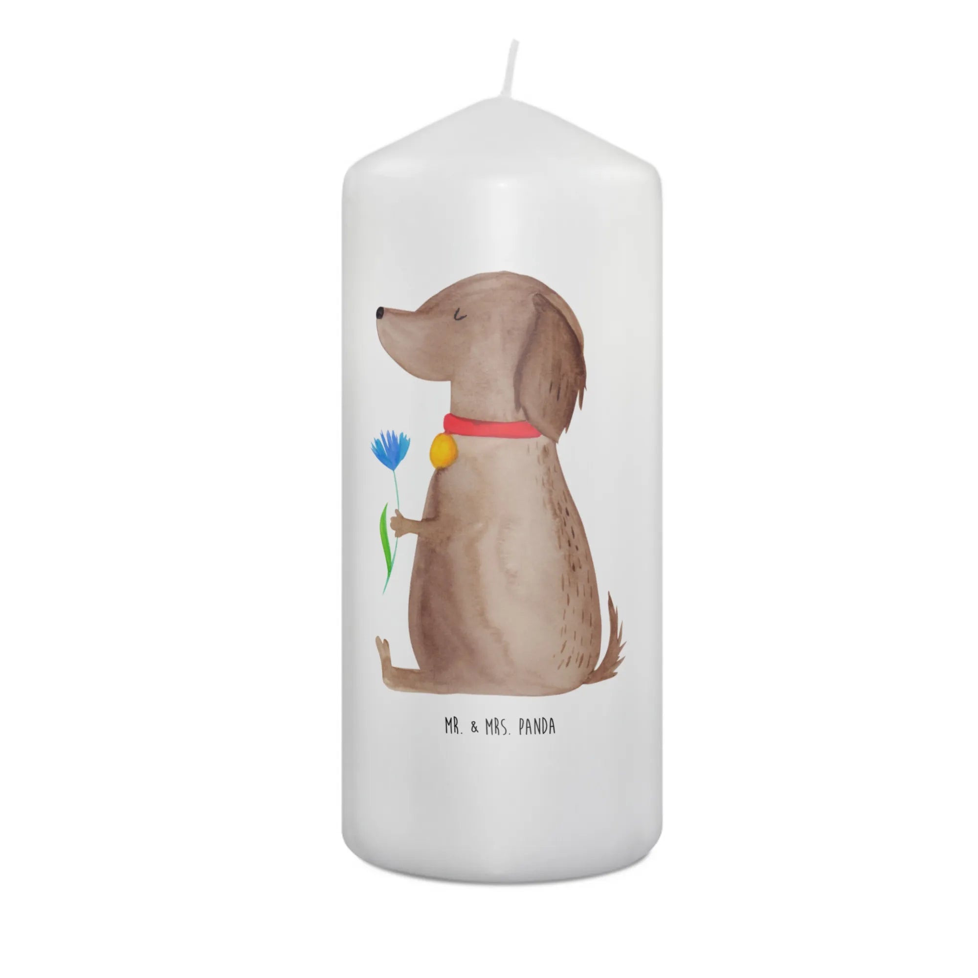 Kerze Hund Blume - 19 x 8 cm - mit Spruch
