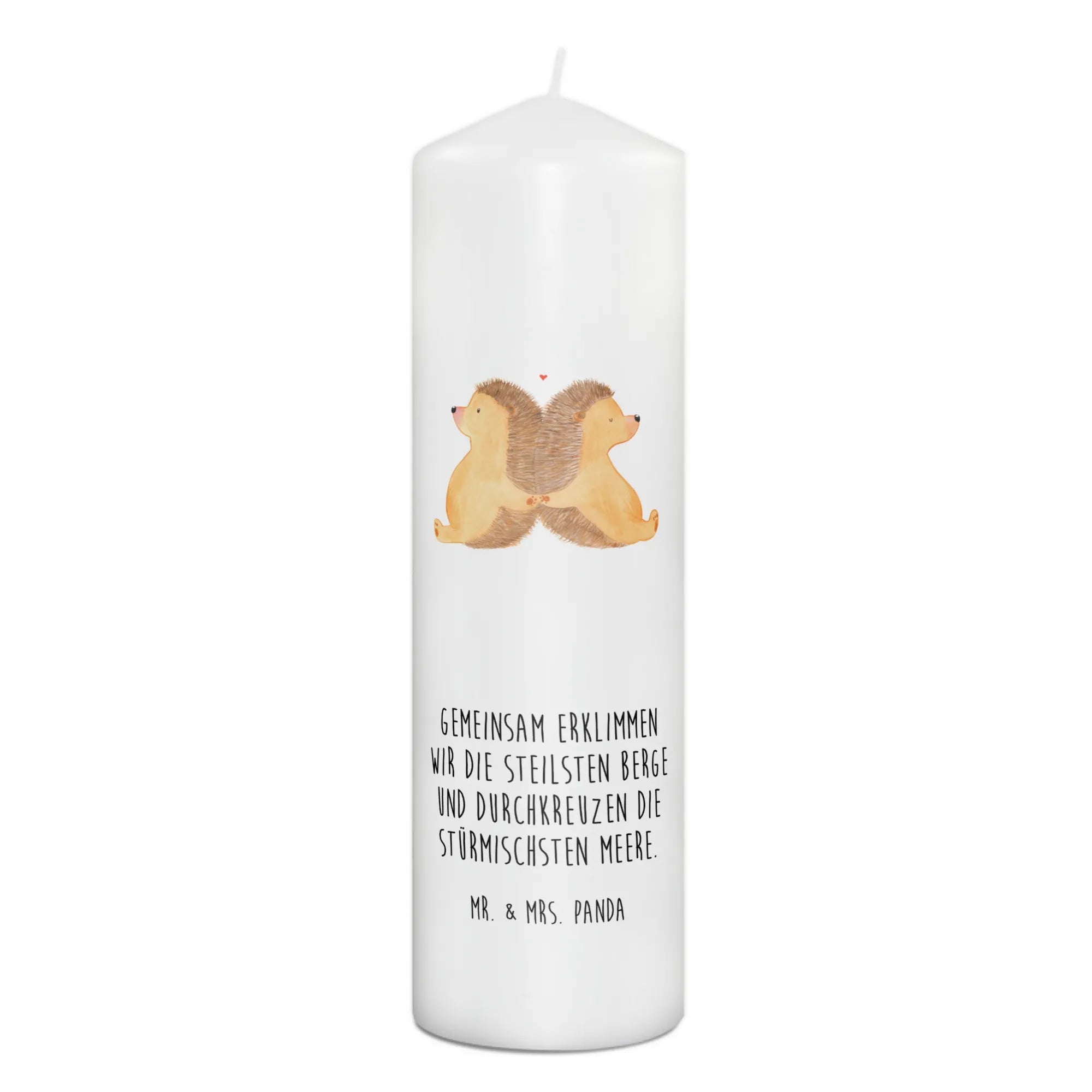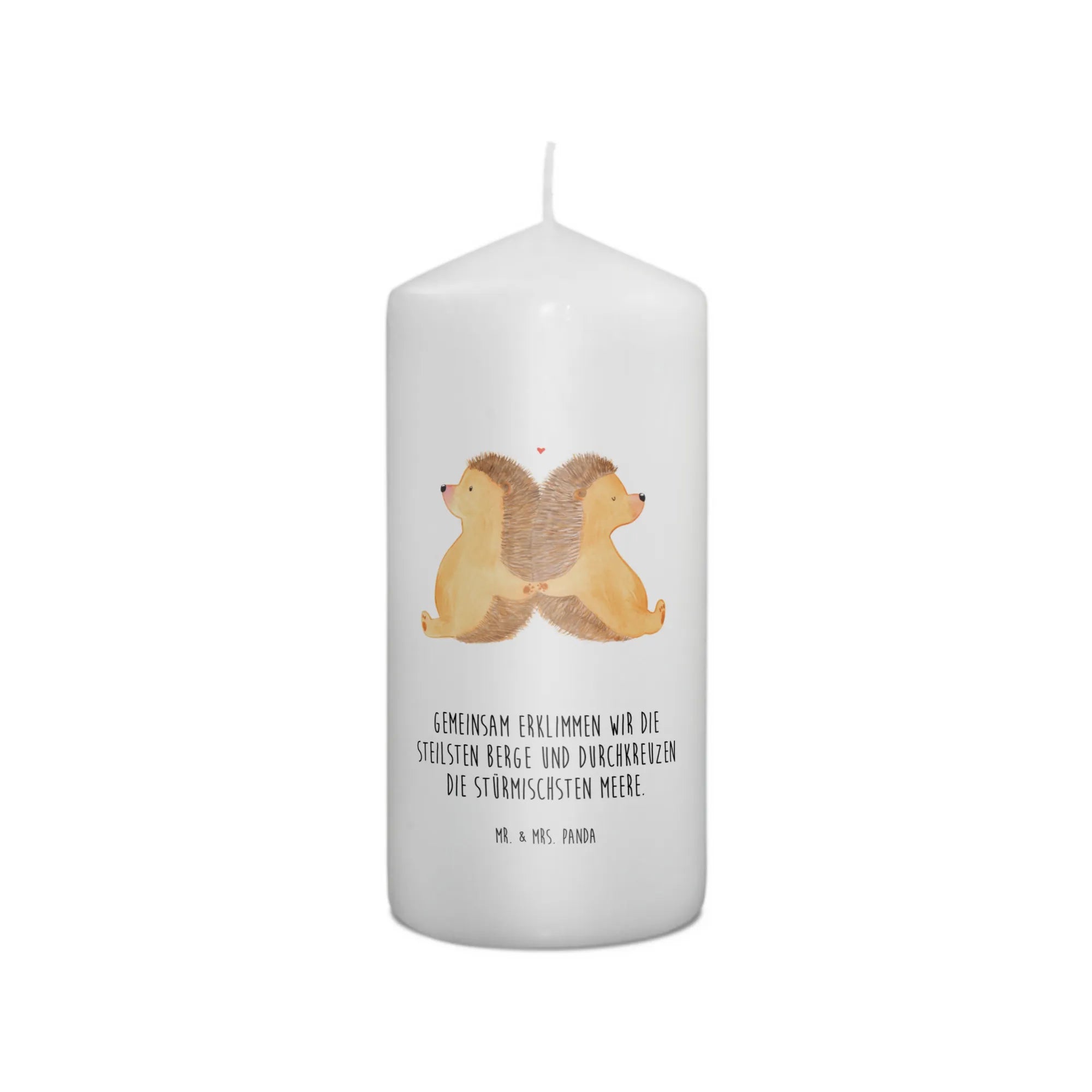 Die handgefertigte Kerze mit dem niedlichen Motiv "Igel händchenhaltend" aus der Liebe-Kollektion von Mr. & Mrs. Panda ist das perfekte Geschenk für besondere Anlässe. Egal ob zum Geburtstag, zur Taufe oder zur Kommunion, diese Kerze bringt Wärme und Liebe in jeden Raum!