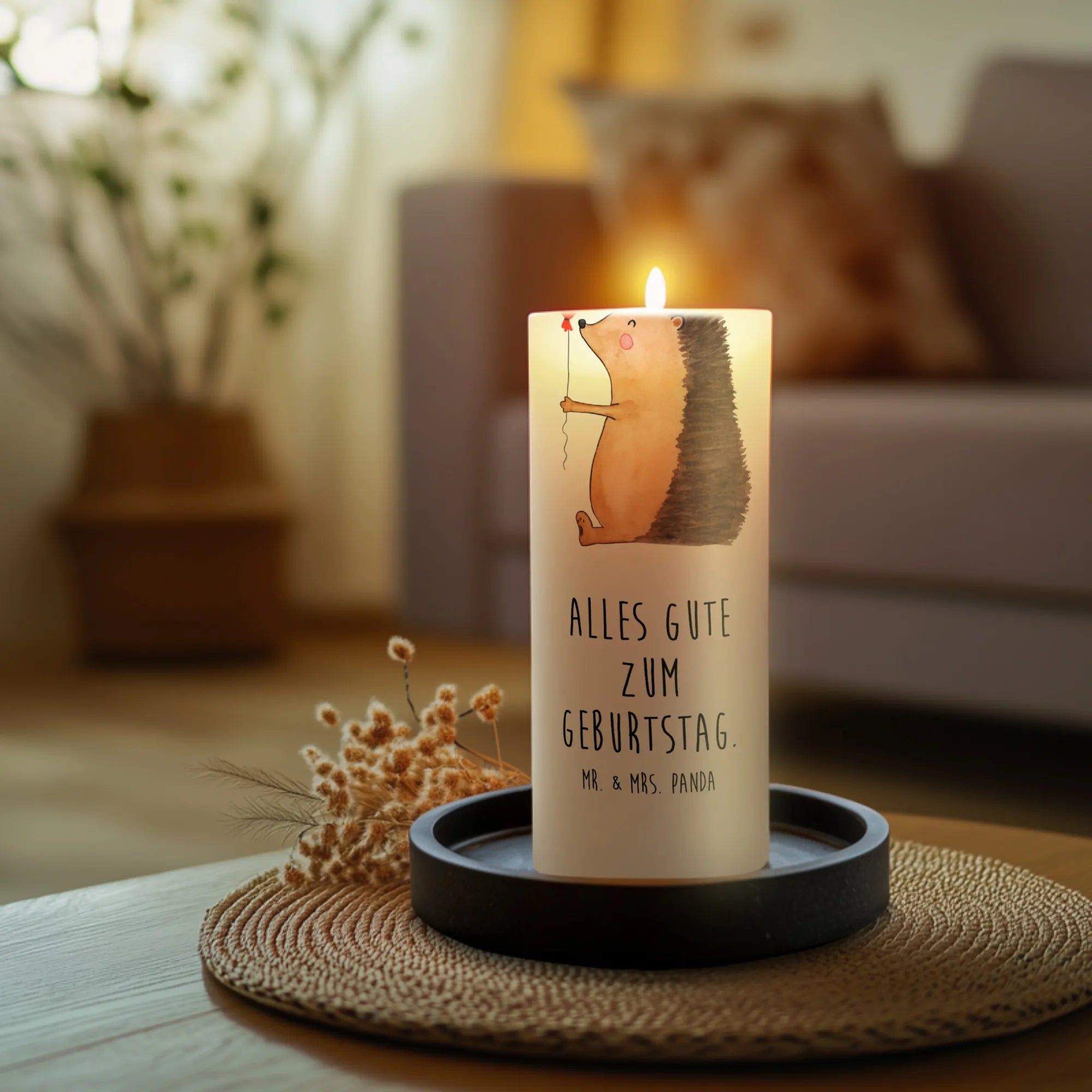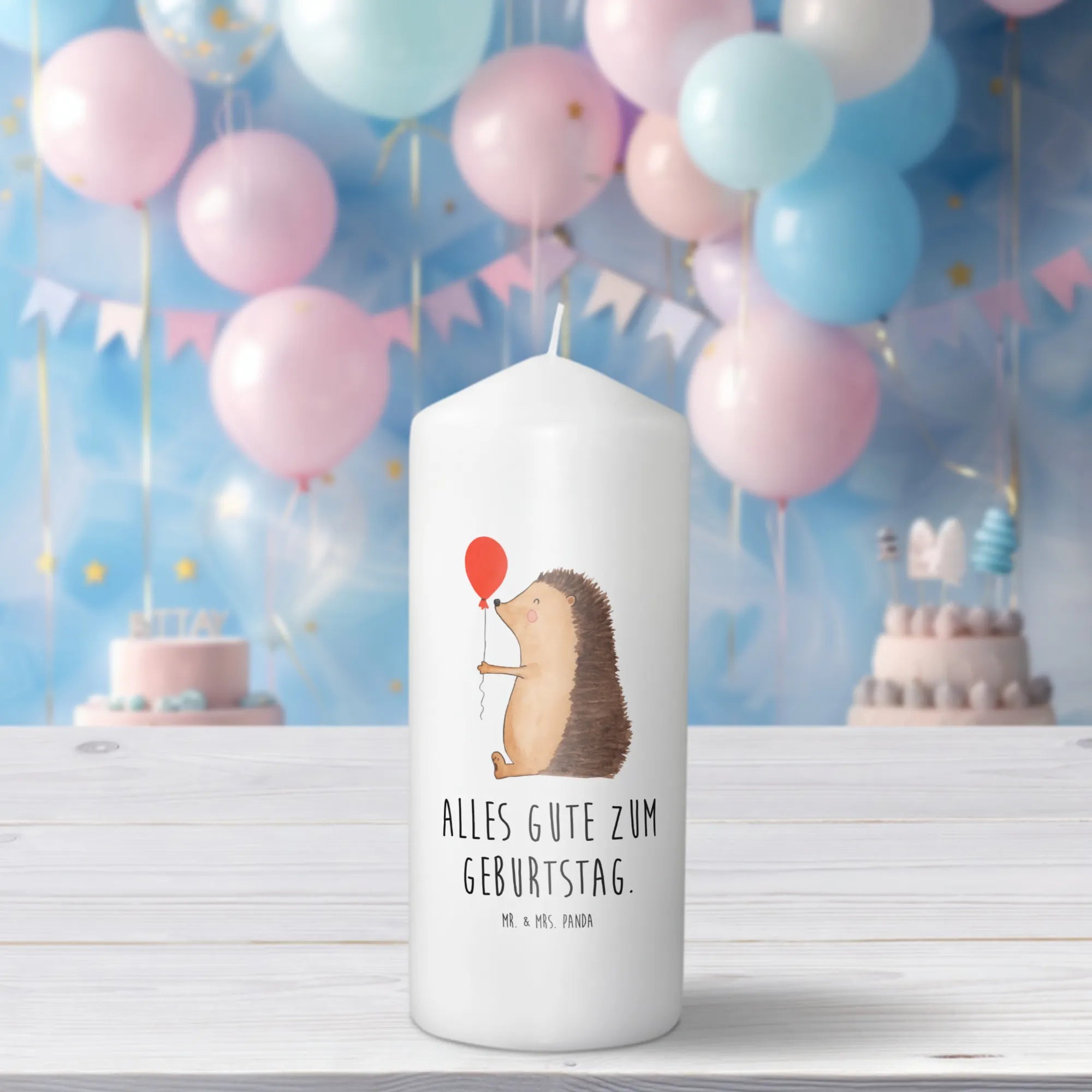 Kerze Igel mit Luftballon - 19 x 8 cm - mit Spruch