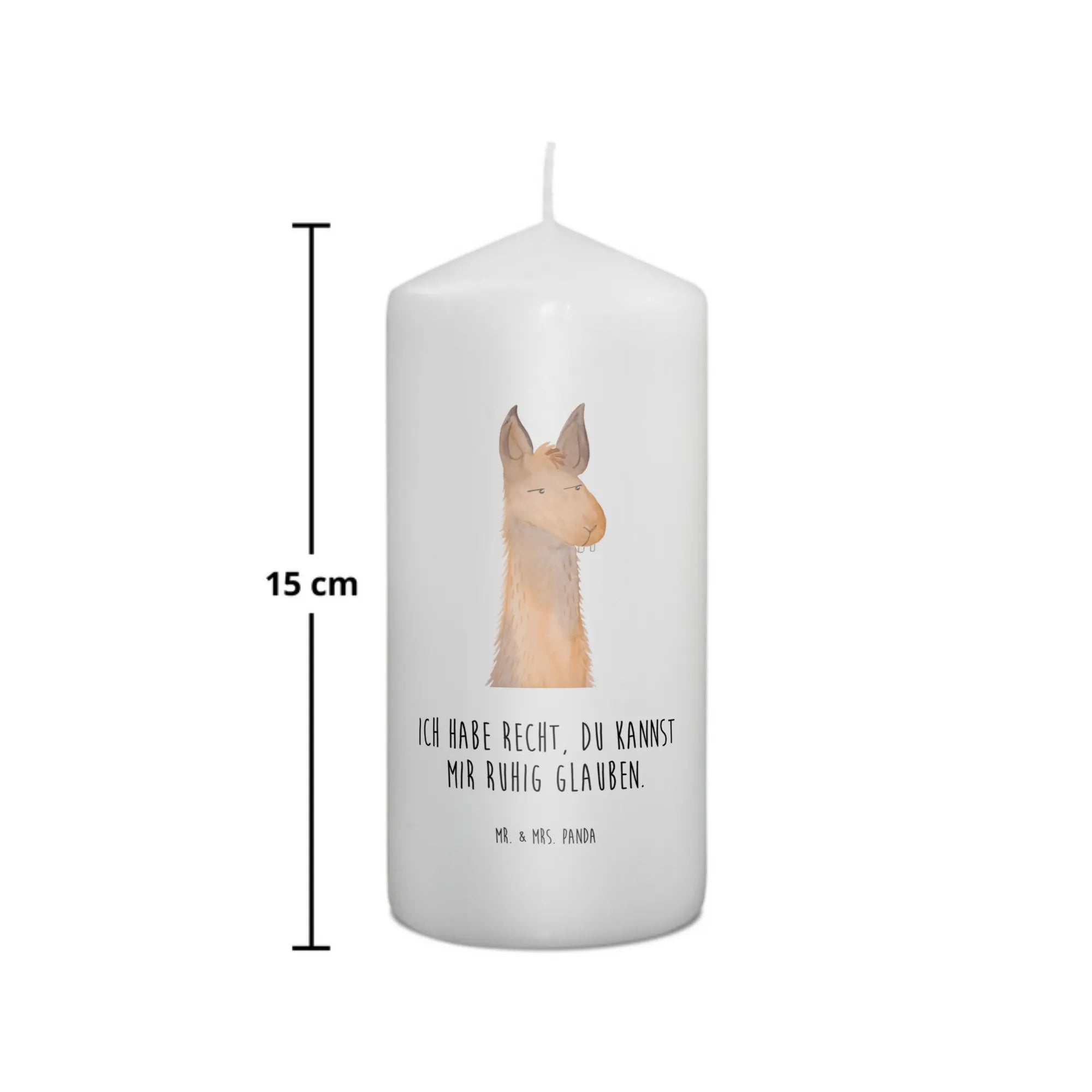 Mit ihrem niedlichen Lamakopf-Motiv und dem Spruch "Ich habe Recht, du kannst mir ruhig glauben" wird sie garantiert ein Lächeln auf die Gesichter der Beschenkten zaubern. Ideal als Geburtstagskerze oder Kommunionskerze, zieht dieses liebevoll gestaltete Stück alle Blicke auf sich.