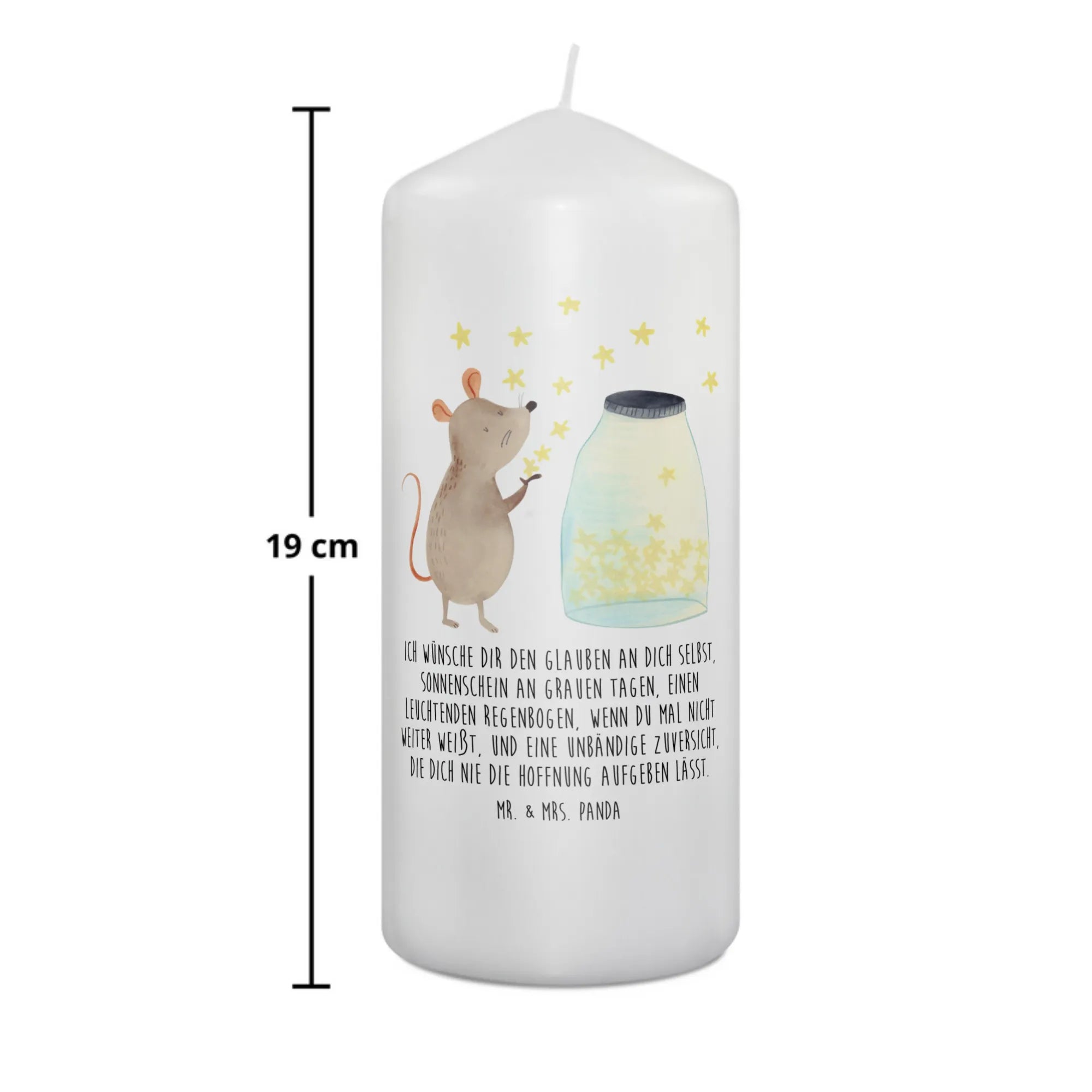 Kerze Maus Sterne - 19 x 8 cm - mit Spruch