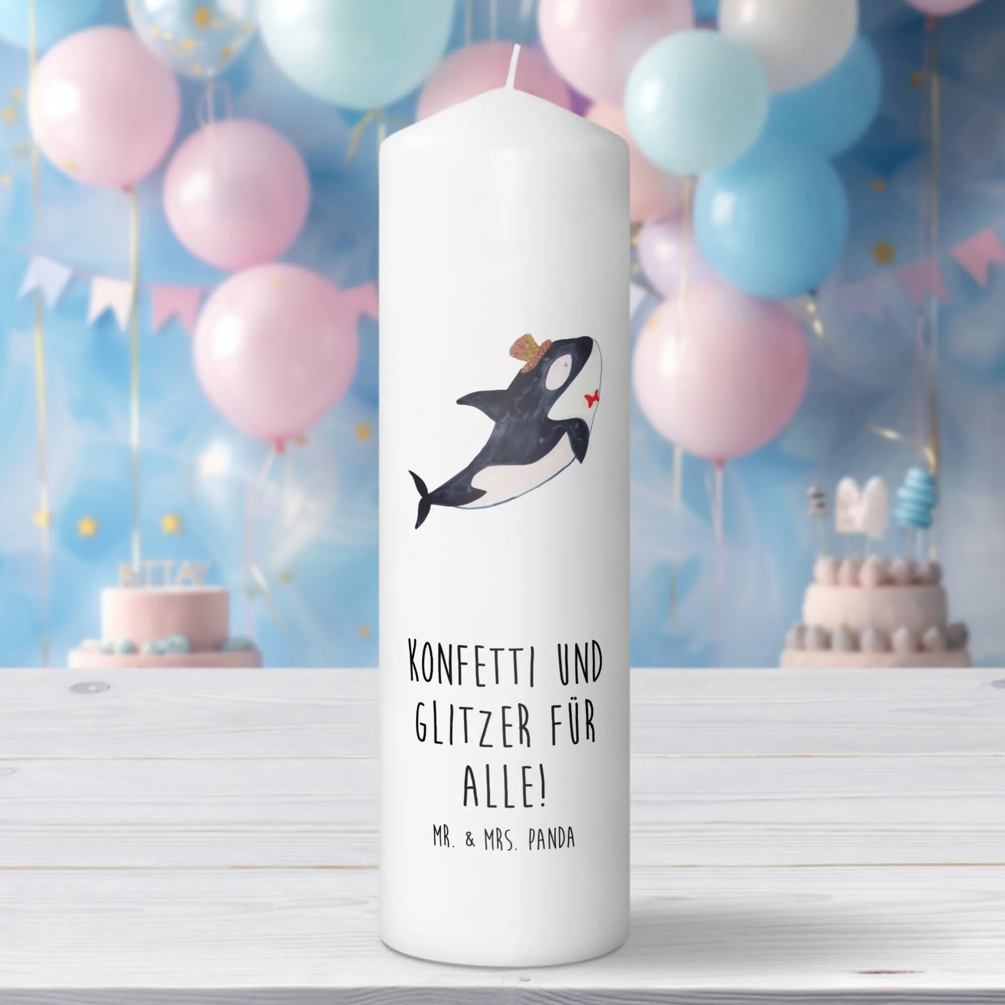 Und das Beste?! Sie kommt ohne zusätzliche Texte, sondern bringt die Botschaft „Konfetti und Glitzer für alle!“ durch ihr fröhliches Design perfekt zum Ausdruck. Schenke Glücksmomente und zauberhafte Stunden mit der Orca Zylinder Kerze von Mr. & Mrs. Panda – der perfekten Geschenkidee für Meerestiere-Fans und für alle, die Glitzer und Freude lieben!