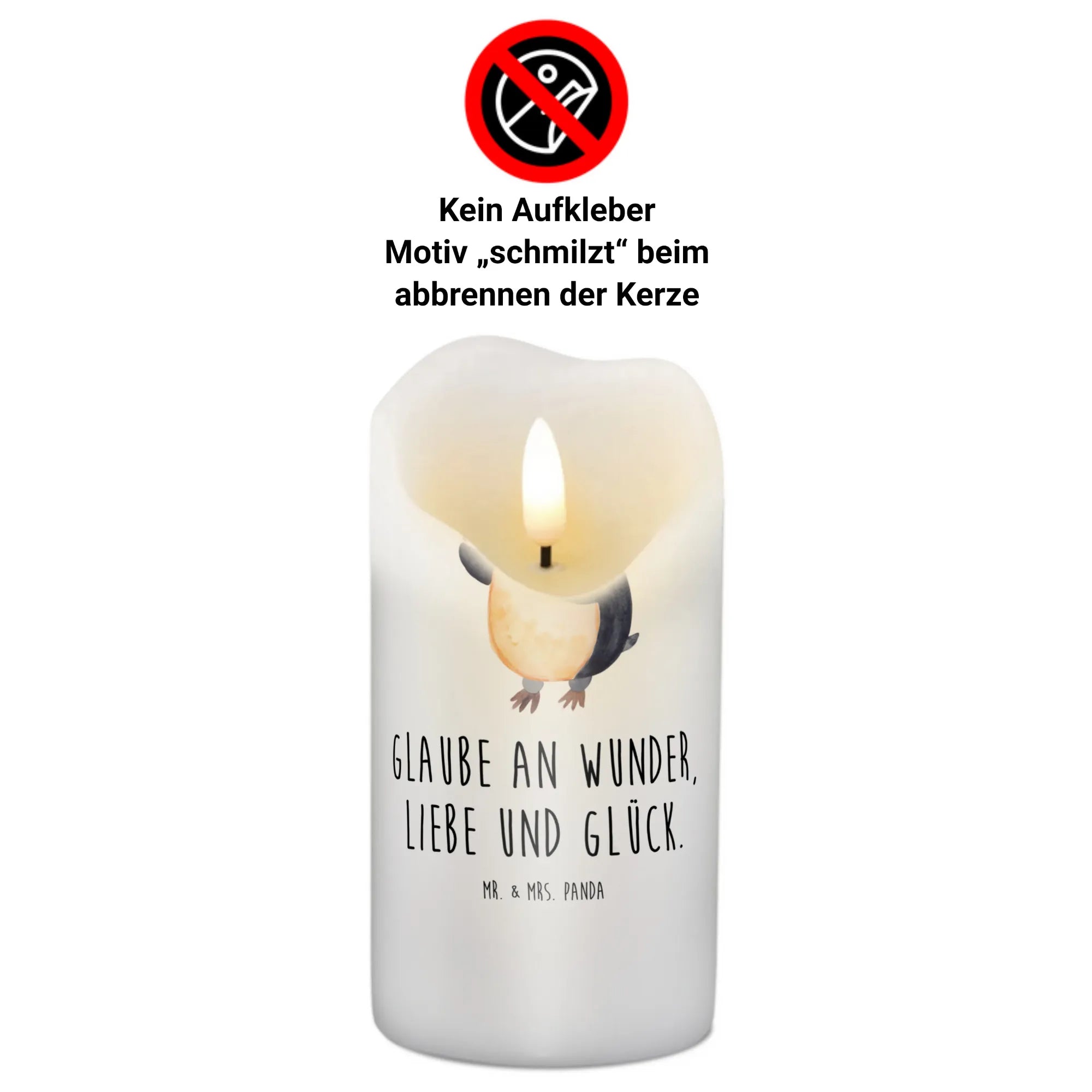 Die Pinguin-Kollektion von Mr. & Mrs. Panda überzeugt durch handgezeichnete Motive und liebevolle Sprüche, die das Herz berühren. Ob Du sie zur Feier eines besonderen Ereignisses verschenkst oder einfach für dich selbst kaufst – diese Kerze gibt ein Stück Lebensfreude weiter. Und die Tatsache, dass das Motiv beim Abbrennen der Kerze schmilzt, sorgt für eine besondere Atmosphäre in Deinem Zuhause.