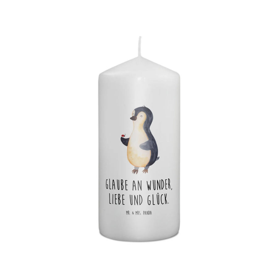 Mit dem entzückenden Motiv eines Pinguins, der einen fröhlichen Marienkäfer auf seiner Flosse hält, wird diese Kerze zum Highlight jeder Feierlichkeit. Die Botschaft 'Glaube an Wunder, Liebe und Glück' spricht jeden an und macht die Kerze zu einem besonderen Geschenk für die Liebsten oder für dich selbst.
