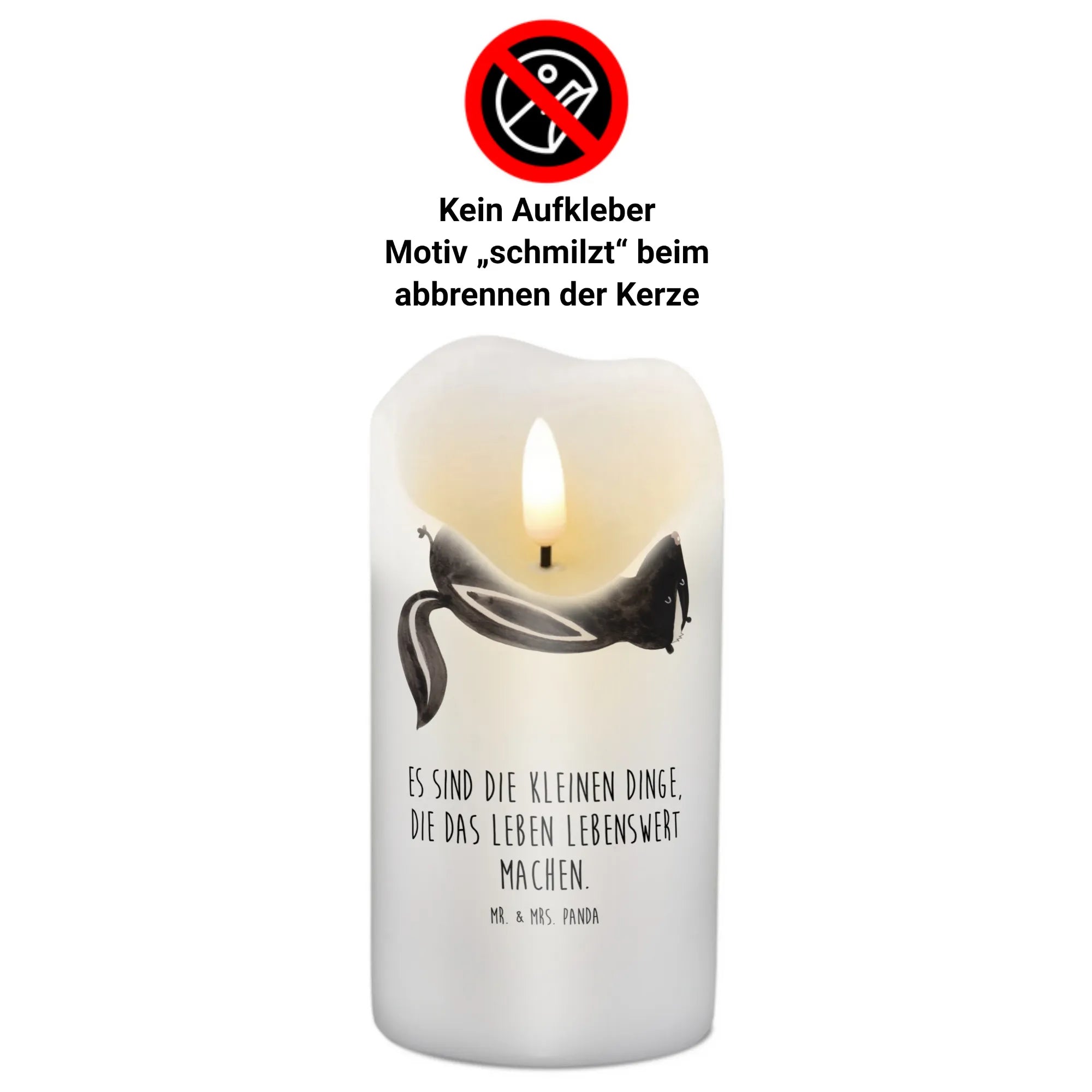 Das liebevoll gestaltete Stinktier-Motiv schmilzt beim Abbrennen der Kerze und sorgt für eine bezaubernde Atmosphäre, die jedem Raum Wärme und Gemütlichkeit verleiht.