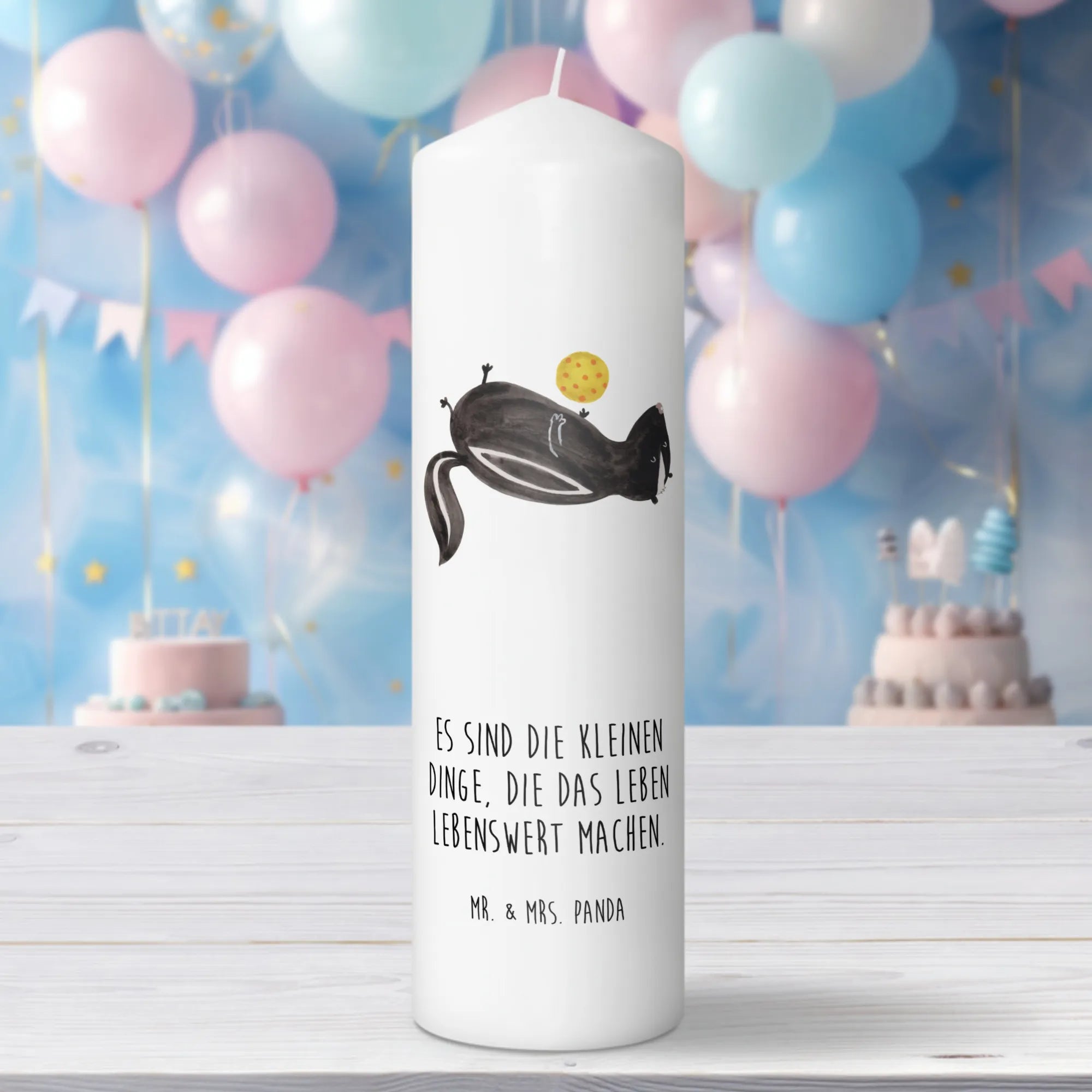 Die liebevolle Kerze mit dem fröhlichen Stinktier Ball aus der einzigartigen Stinktier-Kollektion von Mr. & Mrs. Panda ist ein wunderbares Geschenk zu vielen Anlässen. Ob zur Taufe, zur Kommunion oder zum Geburtstag – diese besonders gestaltete Kerze bringt Freude und eine besondere Stimmung in jedes Zuhause.