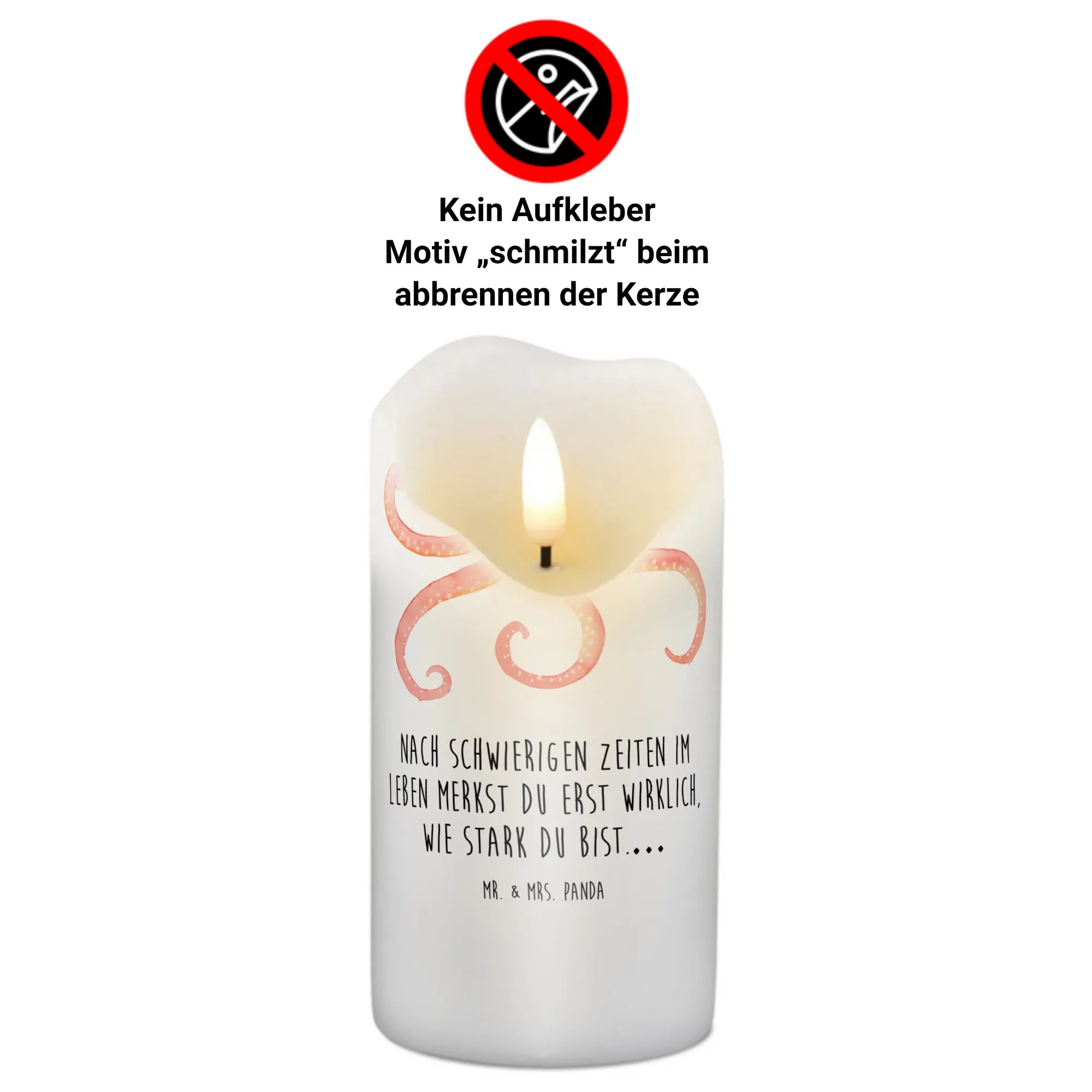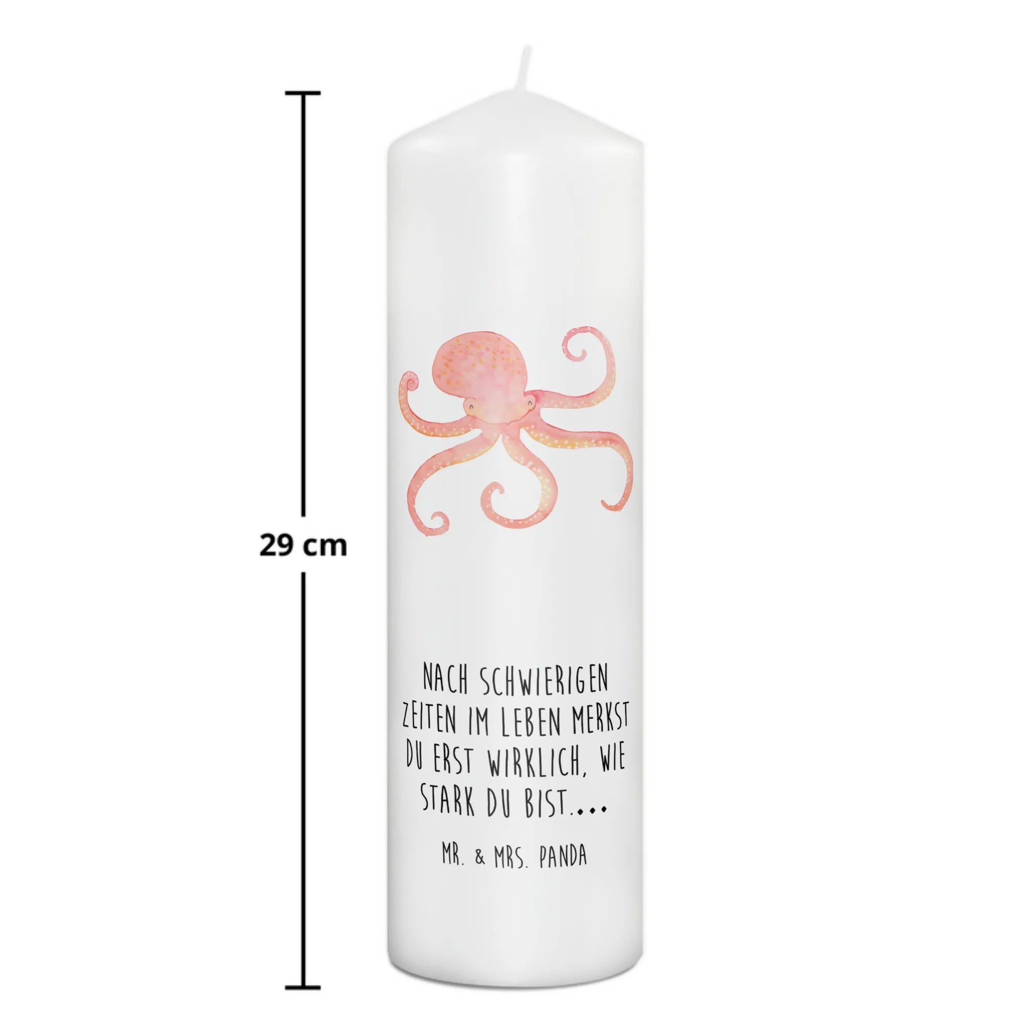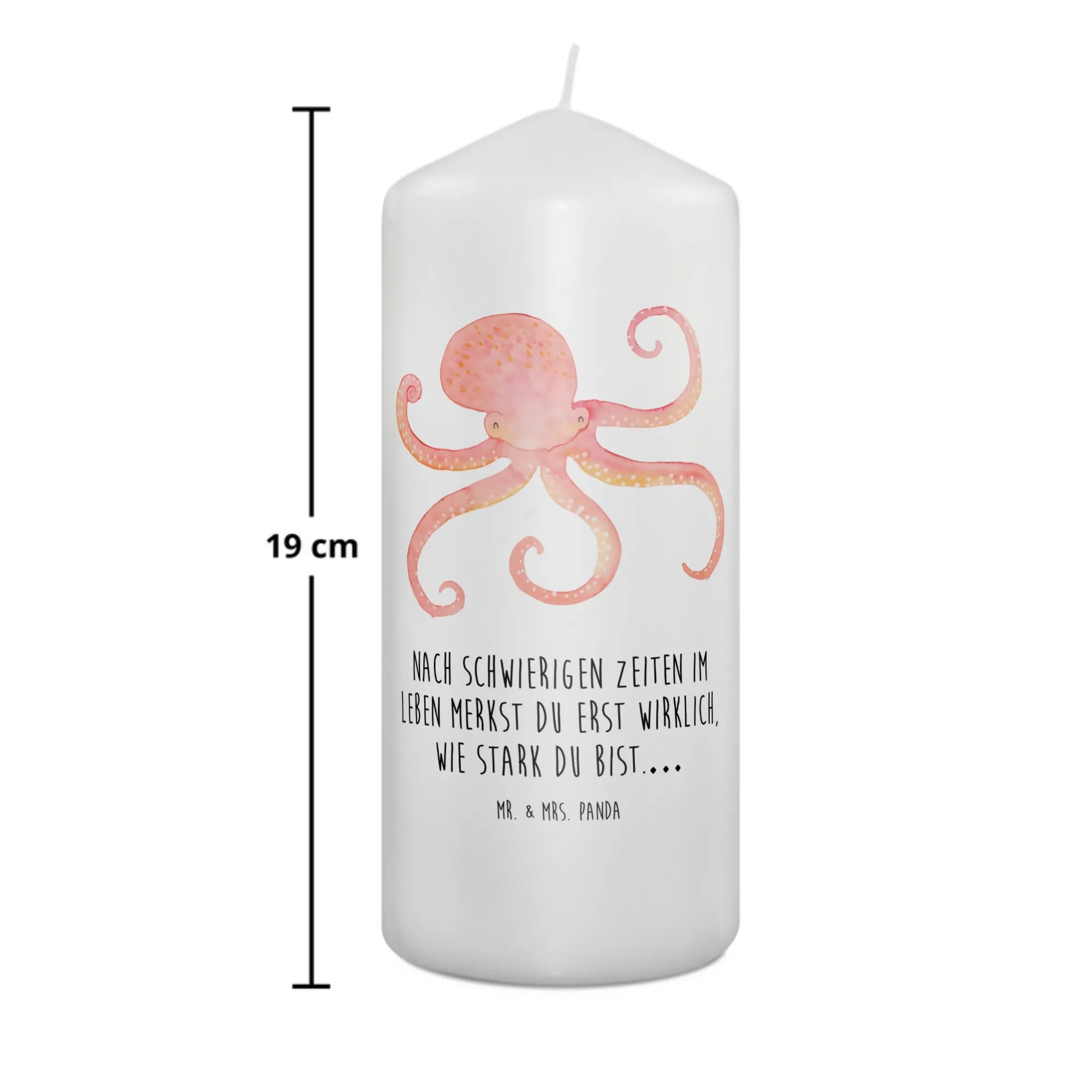 Mit der Kerze Tintenfisch aus der Small World-Kollektion von Mr. & Mrs. Panda schenkst du Wärme, Meereszauber und ein Lächeln. Das liebevoll handgezeichnete Aquarellmotiv zeigt einen roten Tintenfisch, der fröhlich mit seinen Armen winkt und sofort gute Laune verbreitet. Der Spruch „Nach schwierigen Zeiten im Leben merkst du erst wirklich, wie stark du bist.…“ macht die Kerze zu einem kleinen Mutmacher für viele Lebensmomente.
