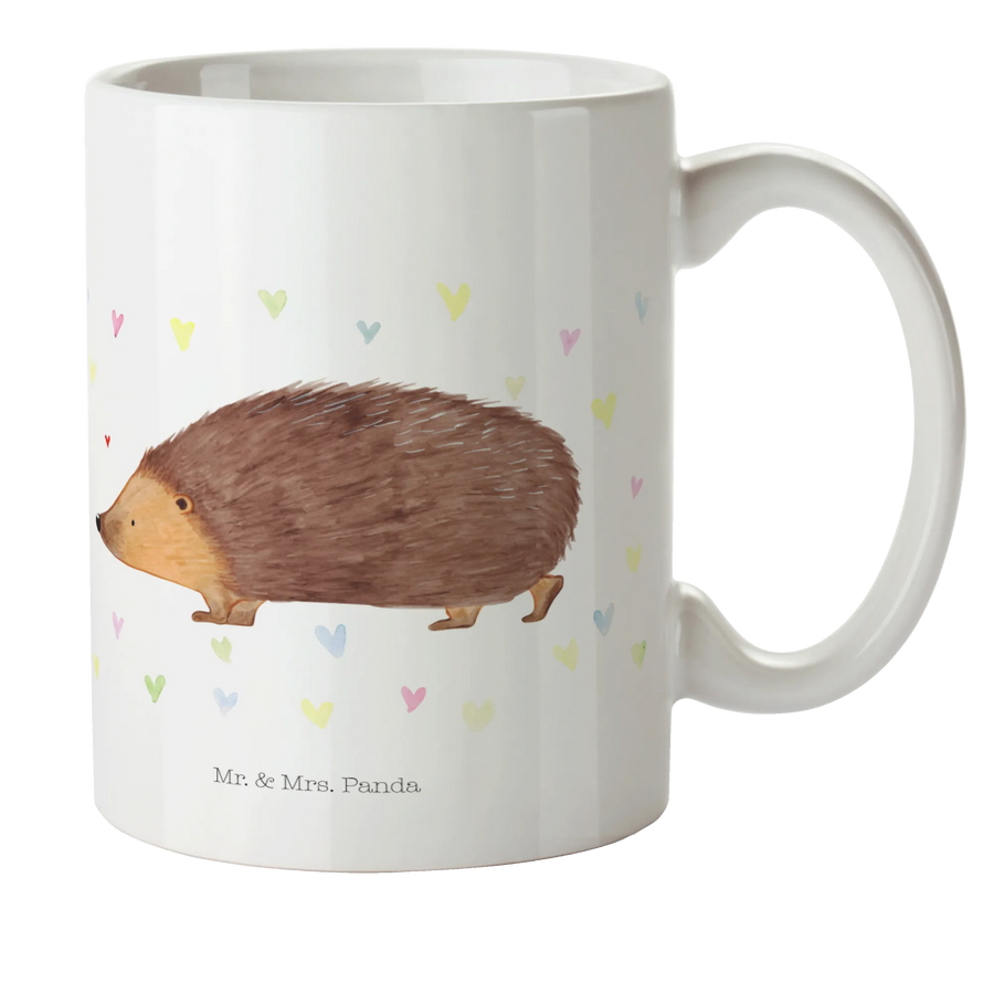Das auffällige Design zeigt einen niedlichen Igel, umgeben von Herzen, was nicht nur die Kreativität anregt, sondern auch ein Gefühl von Wärme und Liebe verbreitet. Dieses bezaubernde Motiv gehört zur beliebten "Small World" Kollektion von Mr. & Mrs. Panda, die für ihre bunten und vielfältigen Tiermotive bekannt ist. Ihr Kind wird diese Tasse lieben, und sie eignet sich hervorragend als Geschenk zu zahlreichen Anlässen wie Geburtstagen, Ostern oder einfach nur als kleine Freude für zwischendurch.