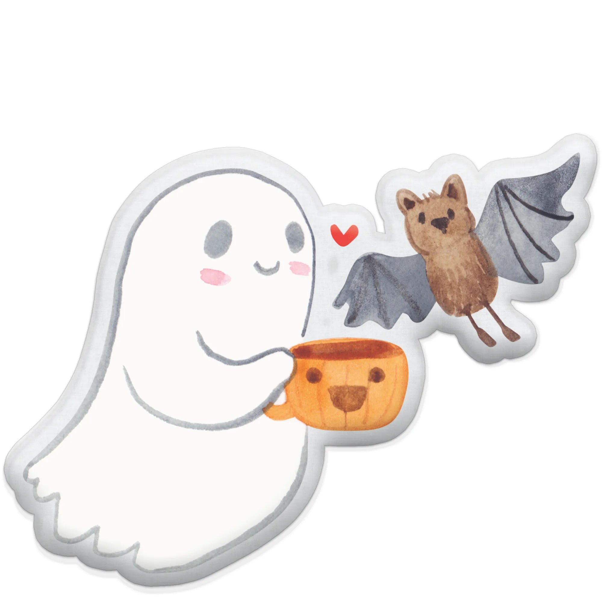 Dieses besondere Kissen, das nicht nur als Dekoration dient, sondern auch als kuscheliges Plüschtier, wird Dein Herz höher schlagen lassen. Das niedliche Gespenst, das fröhlich eine Tasse mit heißem, aromatischem Kürbiskaffee in seinen Händen hält, ist von Hand mit viel Liebe zum Detail entworfen. Neben dem Gespenst schwebt eine kleine, putzige Fledermaus, die dem Kissen eine freundliche Atmosphäre verleiht. Ein kleines rotes Herz zwischen beiden symbolisiert Zuneigung und Freundschaft – perfekt, um Deinen Liebsten eine Freude zu machen oder sich selbst zu beschenken.