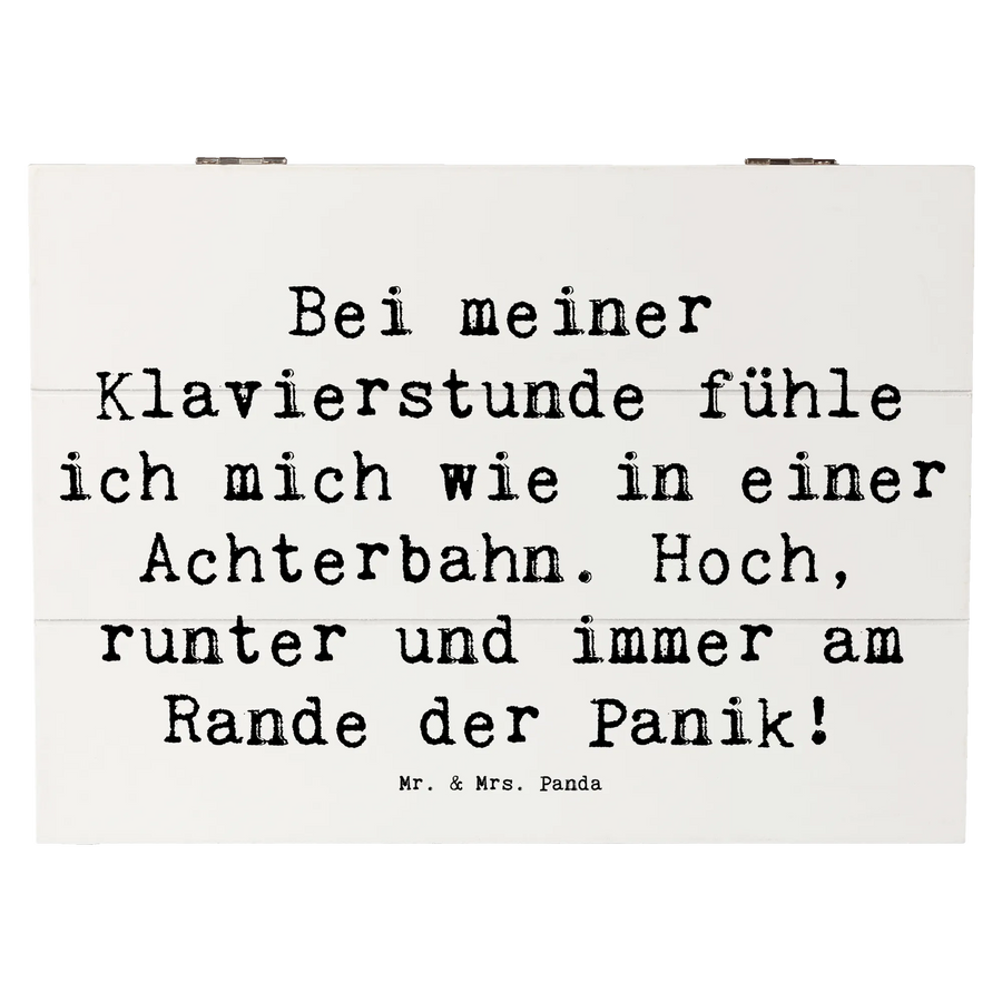 Mit dem passenden Motiv Klavier und dem unterhaltsamen Spruch 'Bei meiner Klavierstunde fühle ich mich wie in einer Achterbahn. Hoch, runter und immer am Rande der Panik!' bringt sie Freude in jedes Zuhause. Ob zur Kommunion, Konfirmation, als Erinnerungskiste für die Kindheit oder einfach als liebevolles Geschenk - unsere Holzkiste ist vielseitig einsetzbar.
