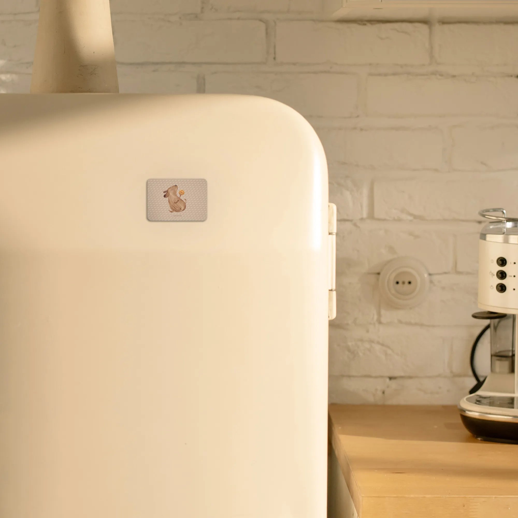 Der Kühlschrankmagnet "Hund Keks" aus der Hunde Kollektion von Mr. & Mrs. Panda ist das perfekte Geschenk für jeden Hundeliebhaber. Ob Du ihn für Dich selbst kaufst oder einem lieben Freund schenkst, dieser Magnet bringt garantiert ein Lächeln ins Gesicht! Mit seinem charmanten Design eines süßen Hundes, der begeistert einen Keks isst, wird er zum Blickfang in jeder Küche oder an jedem Whiteboard.