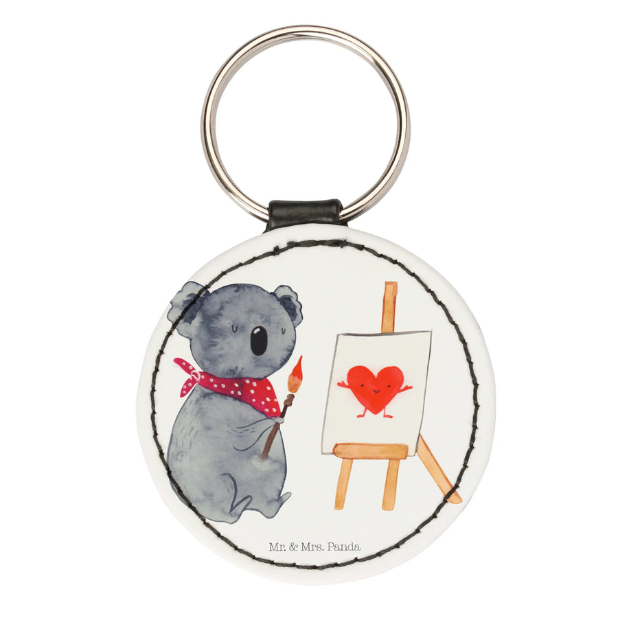 Rund Schlüsselanhänger Koala Künstler - Weiß