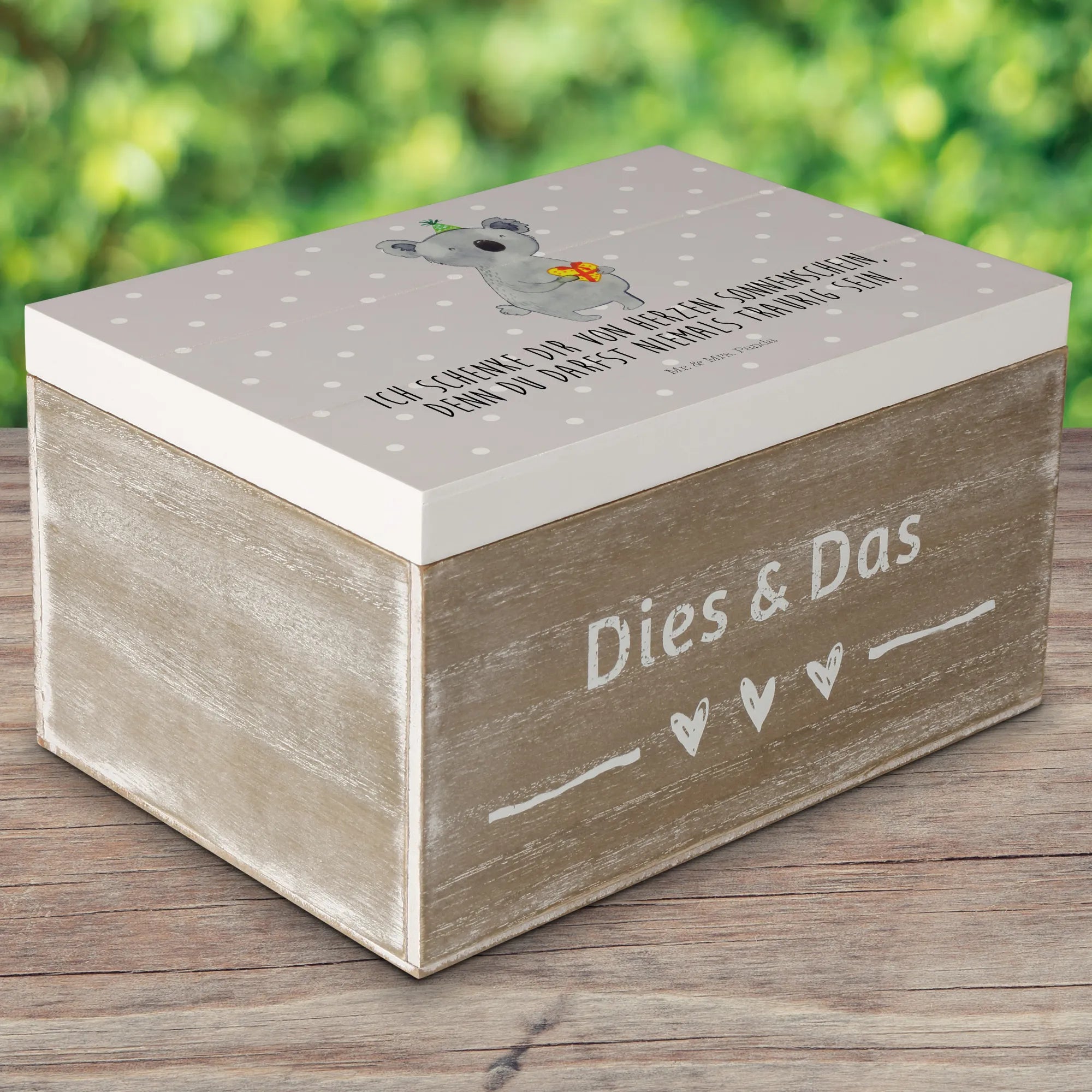 Wenn Du nach einem einzigartigen und liebevollen Geschenk suchst, das sowohl funktional als auch dekorativ ist, dann ist die Holzkiste "Koala Geschenk" von Mr. & Mrs. Panda die perfekte Wahl!
