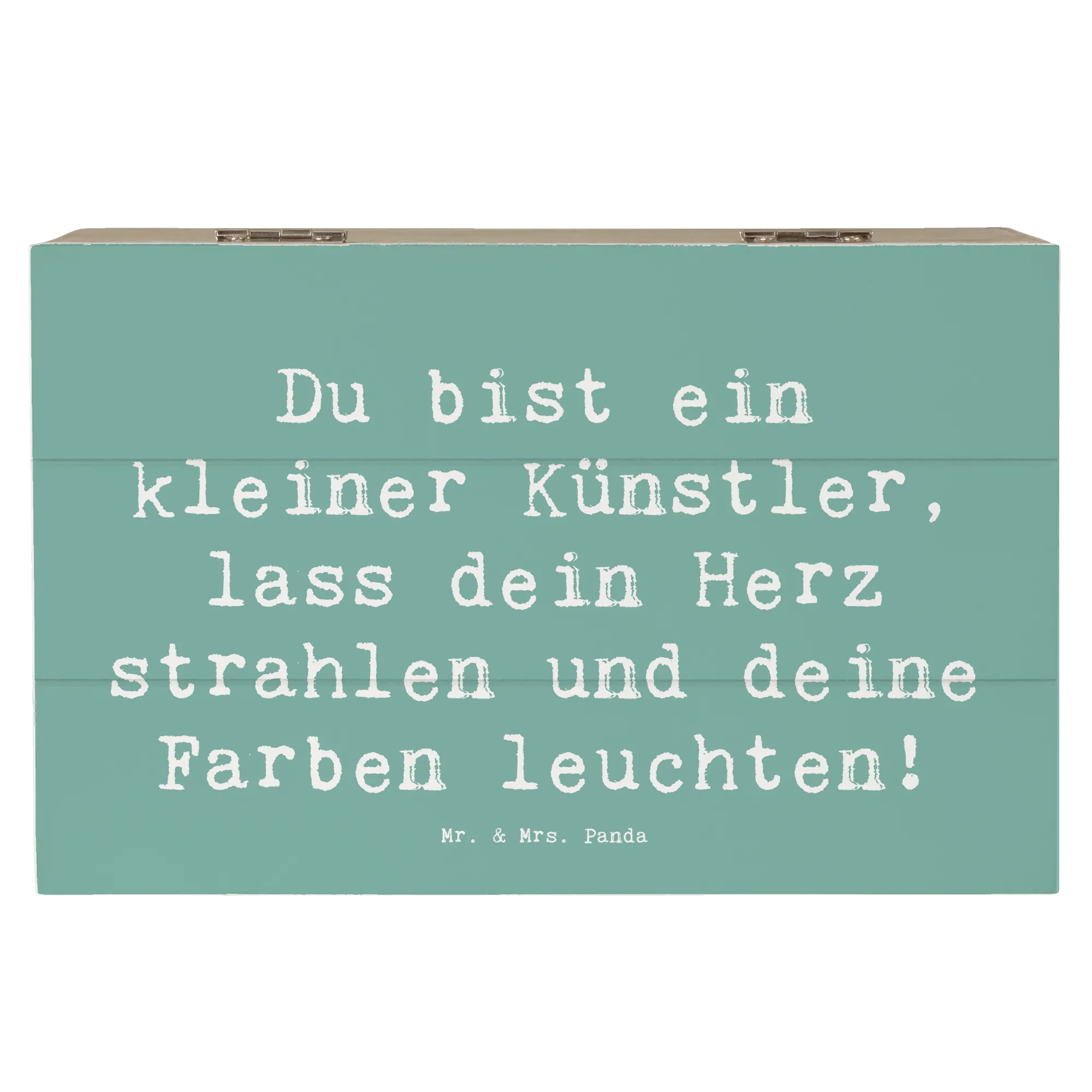 Mit den Maßen von 19 x 12 cm ist diese Kiste ideal für alle kleinen Schätze, die du aufbewahren möchtest. Die robuste Holzfaser macht sie besonders langlebig, und mit einem Gewicht von nur 350 g ist sie leicht zu transportieren. Das traumhafte Design mit dem Motto "Du bist ein kleiner Künstler, lass dein Herz strahlen und deine Farben leuchten!" weckt die kreative Ader in jedem Kind und Erwachsenen und erinnert uns daran, die Welt mit unseren eigenen Farben zu gestalten.