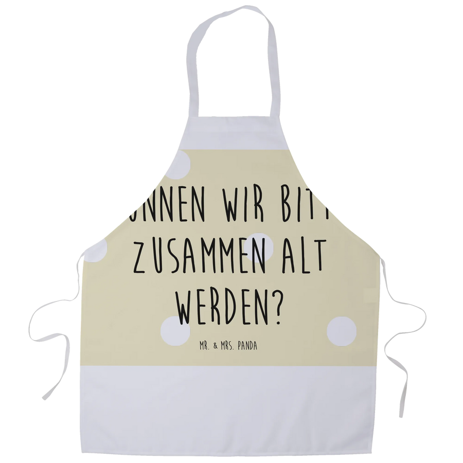 Mit einem Slogan, der das Herz höherschlagen lässt: 'Können wir bitte zusammen alt werden?' richtet sich die Schürze an alle Verliebten oder solche, die es werden möchten. Sie ist nicht nur eine Küchenschürze, sondern ein Statement für Treue und Liebe – perfekt als Liebesgeschenk oder zur Feier eines Heiratsantrages.