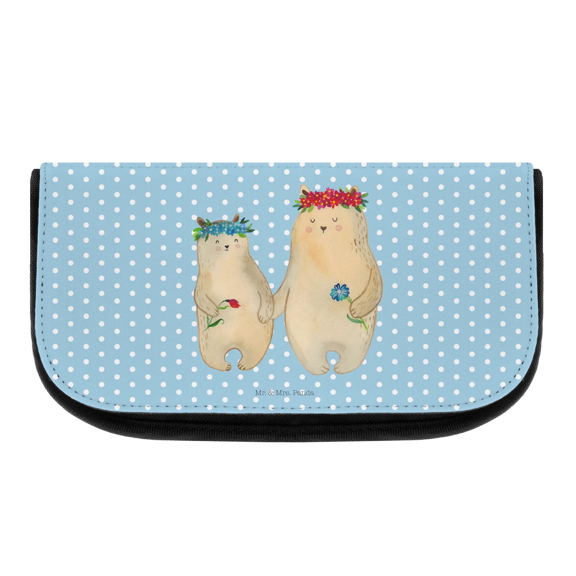 Kosmetiktasche Bären mit Blumenkranz - mit Spruch - Blau Pastell