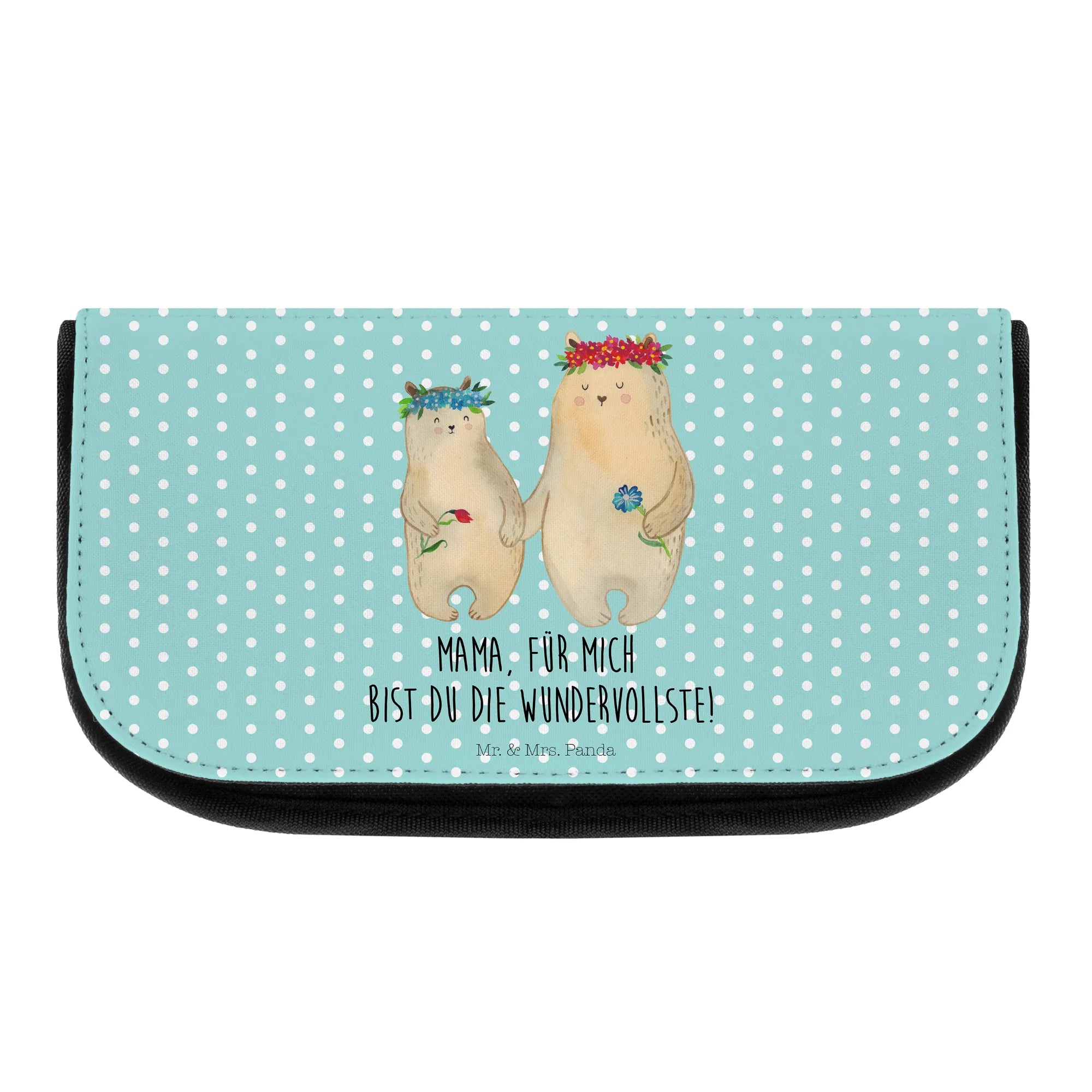 Die Kosmetiktasche von Mr. & Mrs. Panda mit dem liebevollen Motiv der Bären mit Blumenkranz ist das perfekte Geschenk für alle Mamas und Frauen, die du liebst. Perfekt für die Aufbewahrung von Makeup, Kosmetik und persönlichen Kleinigkeiten, vereint sie Funktionalität mit einem bezaubernden Design.