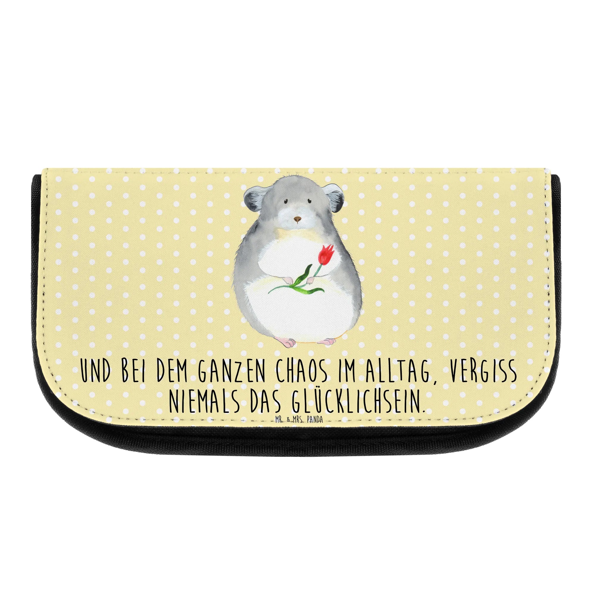 Die Kosmetiktasche "Chinchilla mit Blume" aus der Small World Kollektion von Mr. & Mrs. Panda ist nicht nur ein praktisches Accessoire, sondern auch ein echter Hingucker. Aus strapazierfähiger Kunstfaser gefertigt, bietet sie genügend Platz für all deine Beautyprodukte – egal ob Make-up, Pflegeartikel oder andere kleine Schätze.