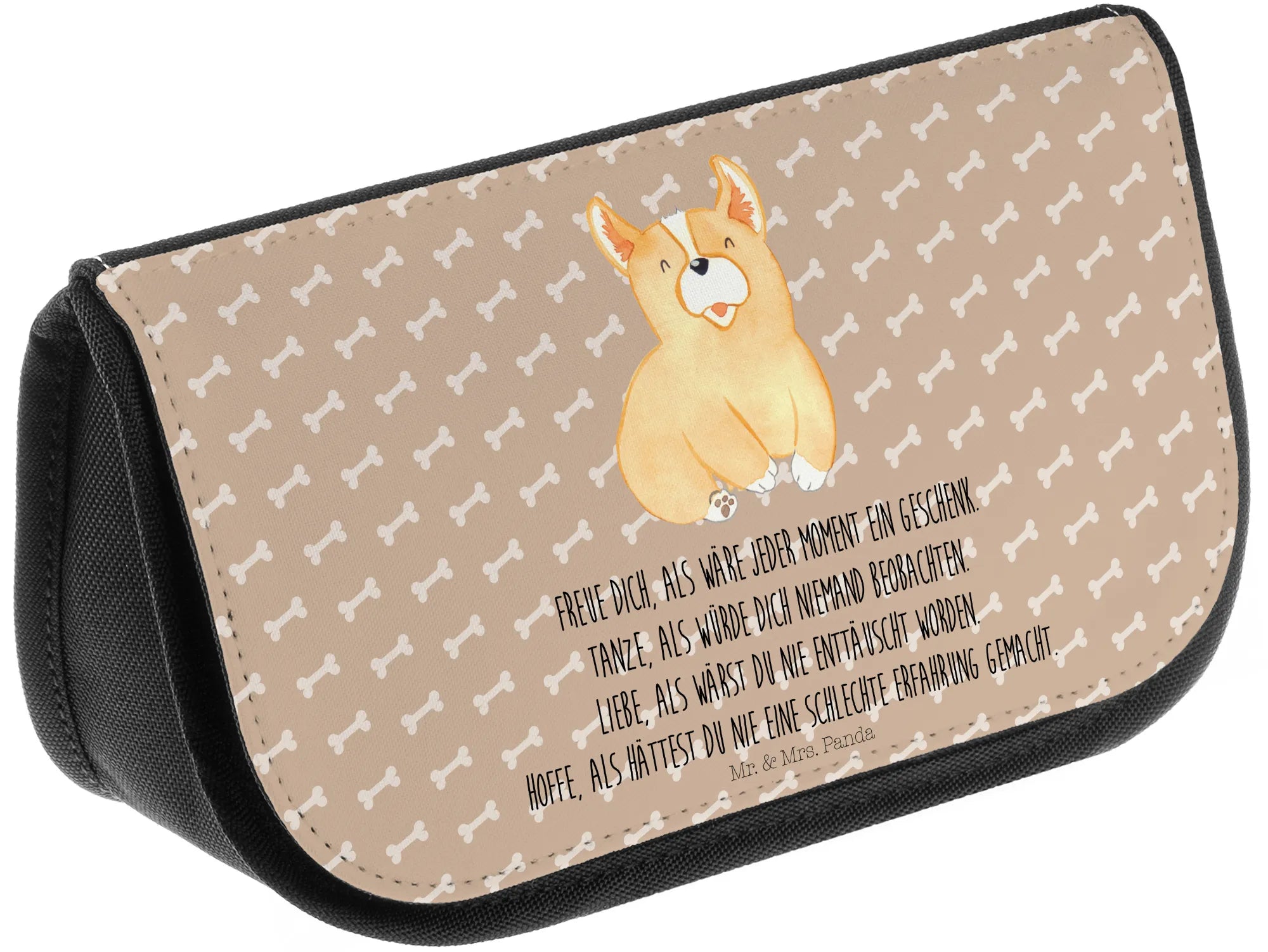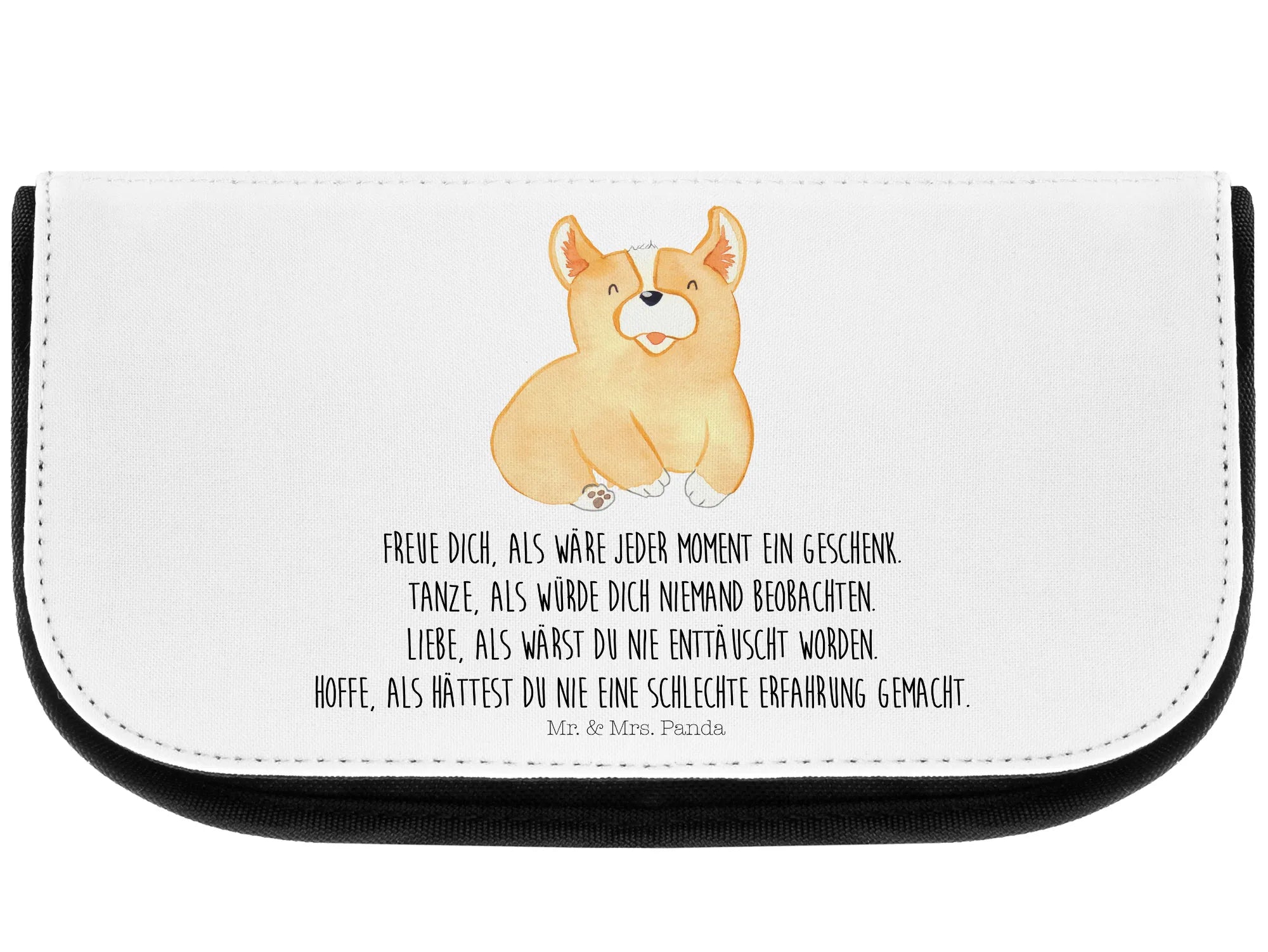 Entdecke die zauberhafte Kosmetiktasche von Mr. & Mrs. Panda, die nicht nur praktisch, sondern auch ein echter Hingucker ist! 🐶💖 Diese Kosmetiktasche beeindruckt mit ihrem süßen Corgi-Motiv und dem motivierenden Spruch: "Freue dich, als wäre jeder Moment ein Geschenk. Tanze, als würde dich niemand beobachten. Liebe, als wärst du nie enttäuscht worden. Hoffe, als hättest du nie eine schlechte Erfahrung gemacht." Der perfekte Begleiter für alle Tierliebhaber und Hundebesitzer, die das Leben mit einem Lächeln genießen möchten!