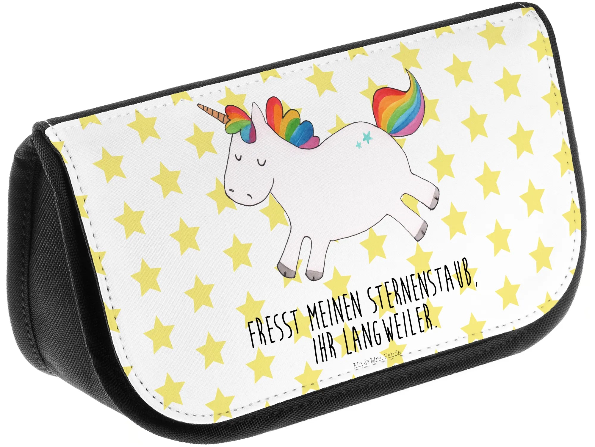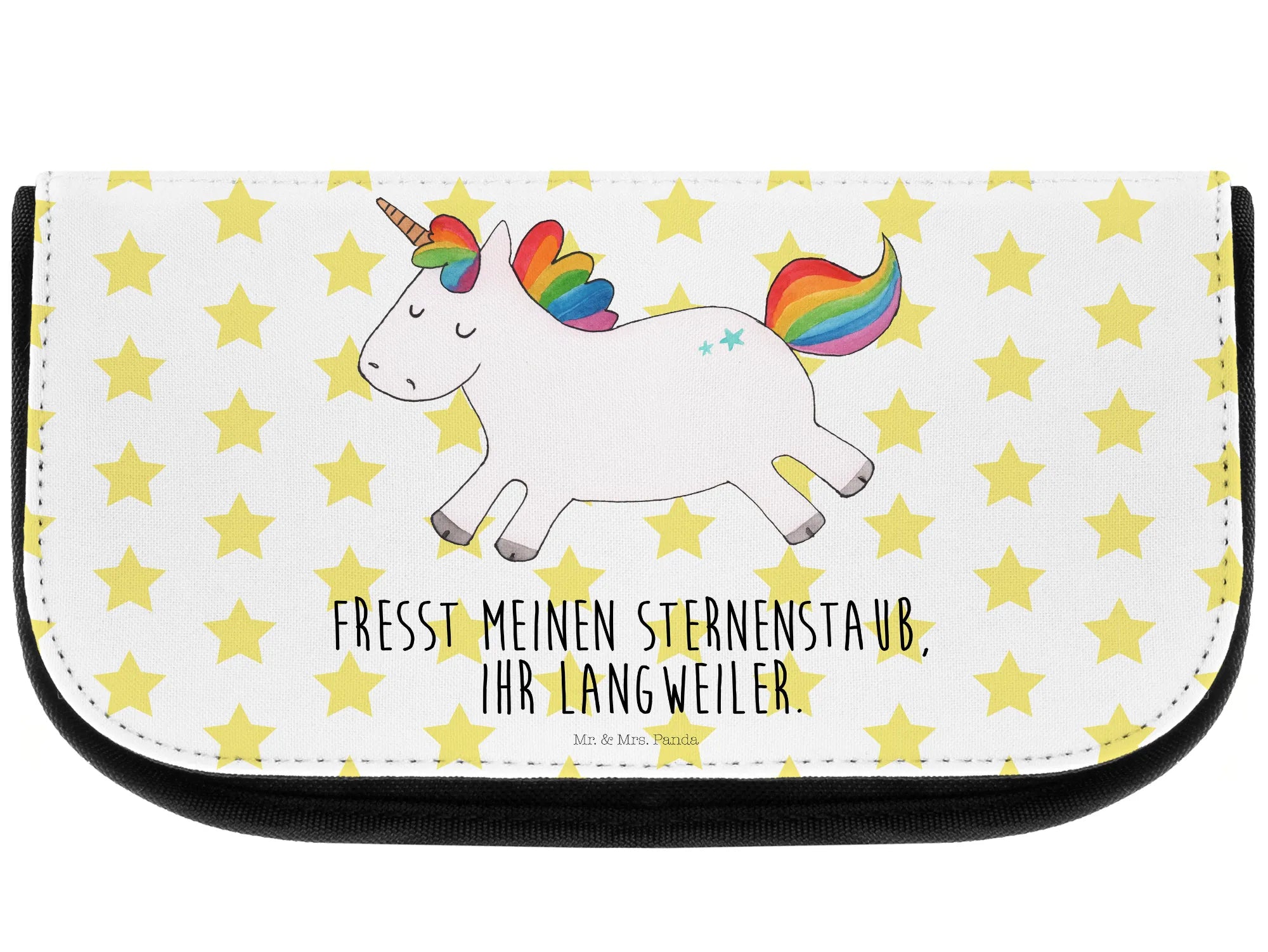 Die Kosmetiktasche Einhorn Happy aus der Einhorn-Kollektion von Mr. & Mrs. Panda ist das perfekte Geschenk für alle, die Einhörner lieben und ein wenig Freude in ihren Alltag bringen möchten! Mit ihrem fröhlichen Design und der süßen Botschaft "Fresst meinen Sternenstaub, ihr Langweiler" zaubert diese Kosmetiktasche jedem ein Lächeln ins Gesicht.