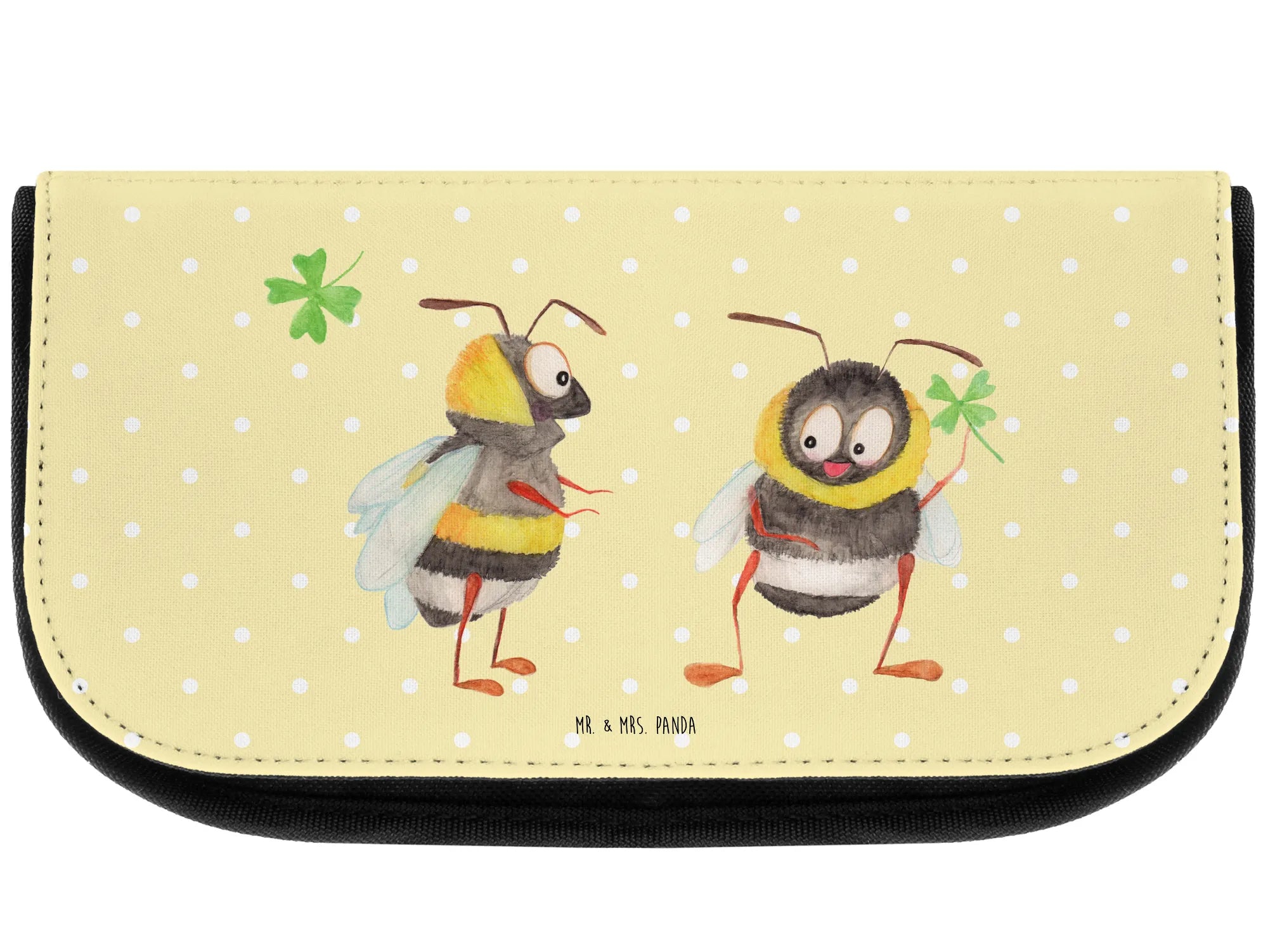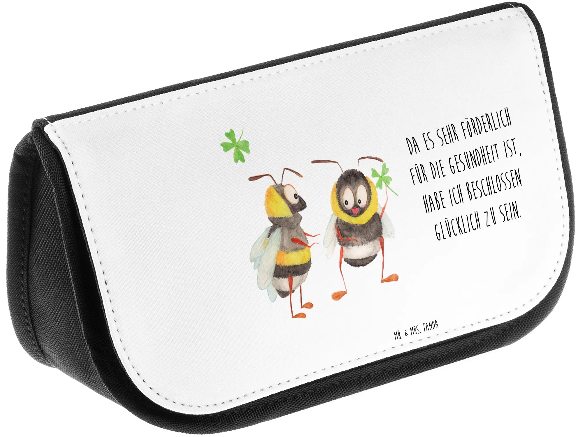 Der strapazierfähige Kunstfaser-Material garantiert, dass deine Kosmetiktasche auch unterwegs immer gut aussieht und sich leicht reinigen lässt. Die Frontseite der Tasche ist hochwertig mit einem süßen Motiv von Mr. & Mrs. Panda bedruckt: zwei niedliche Hummeln, die sich gegenüberstehen und ein Kleeblatt halten. Dieses Motiv symbolisiert Glück und Verbundenheit - perfekt, um die Freude mit deinem Lieblingsmenschen zu teilen.