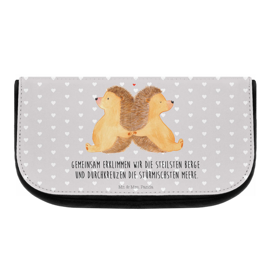 Kosmetiktasche Igel händchenhaltend - mit Spruch - Grau Pastell