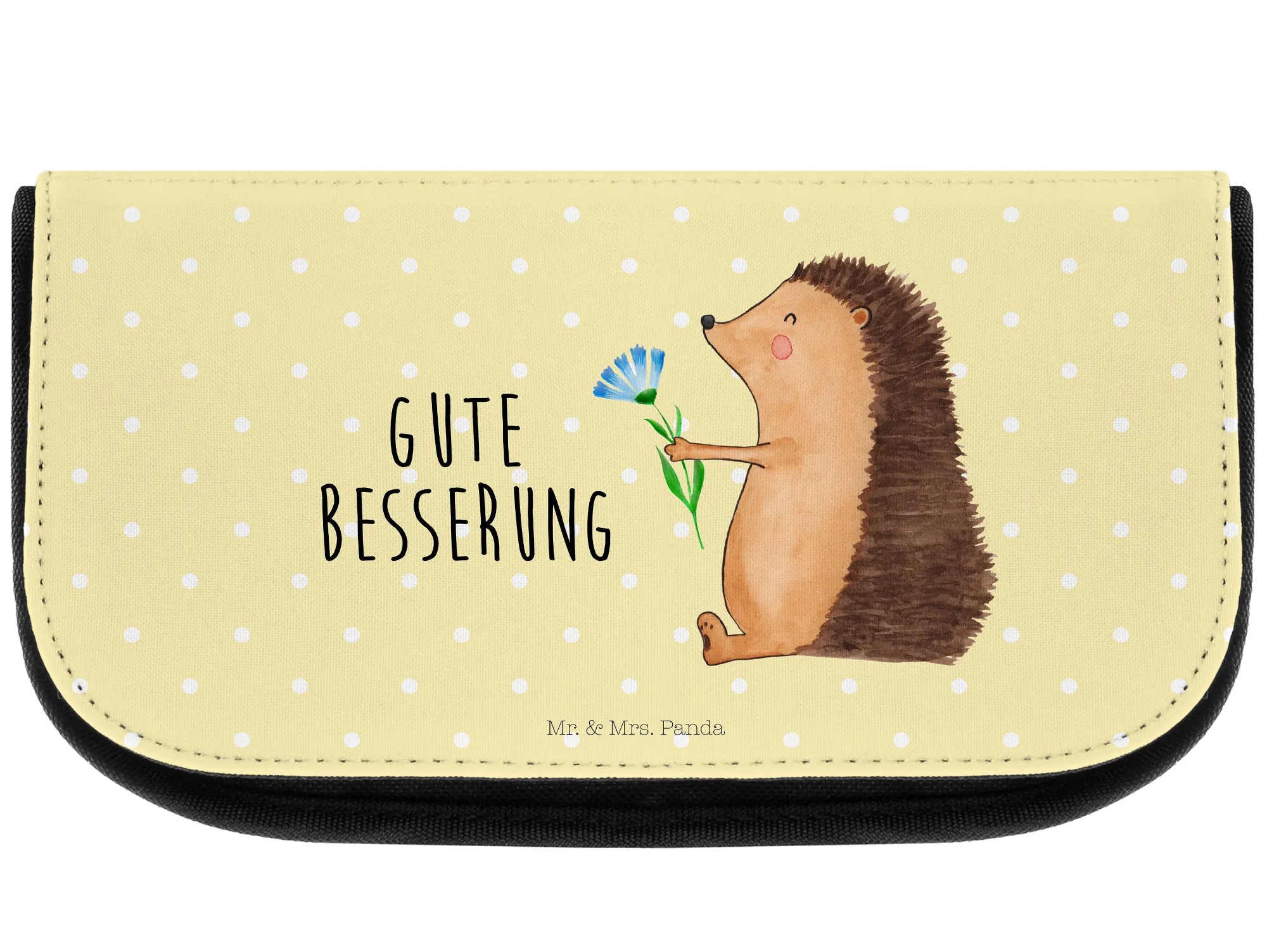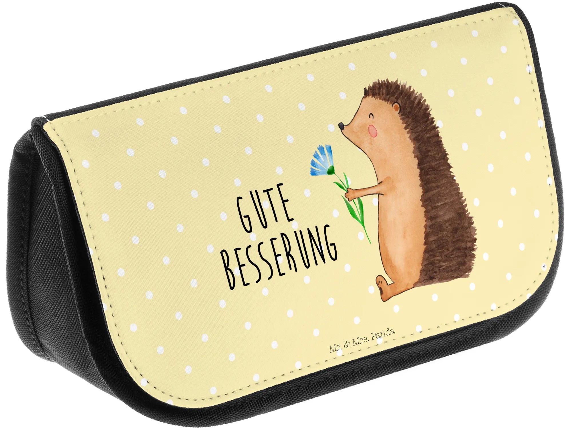 Kosmetiktasche Igel Blumen - mit Spruch - Gelb Pastell