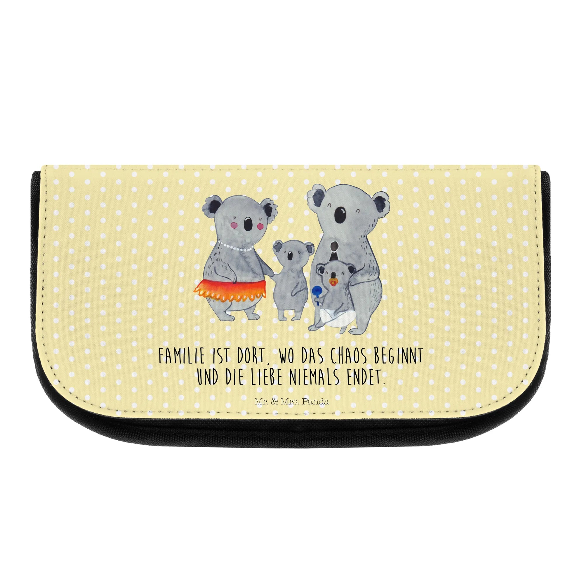 Die Kosmetiktasche mit dem süßen Motiv der Koala Familie von Mr. & Mrs. Panda ist das perfekte Geschenk für alle, die Familie und Verbundenheit schätzen. Aus strapazierfähiger Kunstfaser gefertigt und hochwertig bedruckt, vereint diese Kosmetiktasche Funktionalität mit ansprechendem Design.