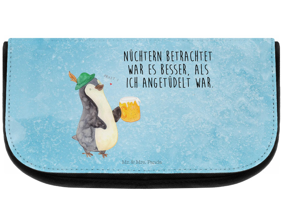 Kosmetiktasche Pinguin Bier - mit Spruch - Eisblau