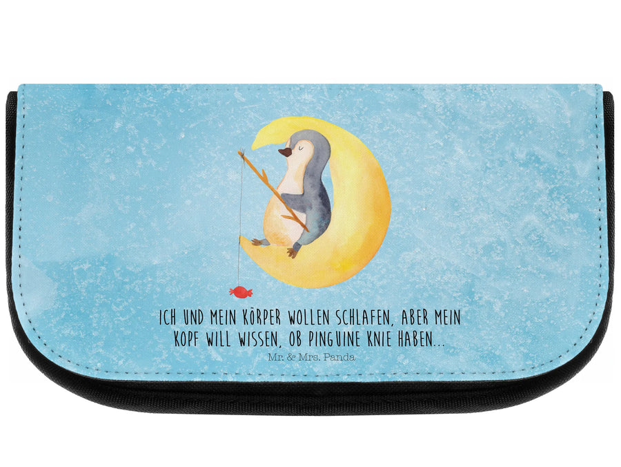 Kosmetiktasche Pinguin Mond - mit Spruch - Eisblau