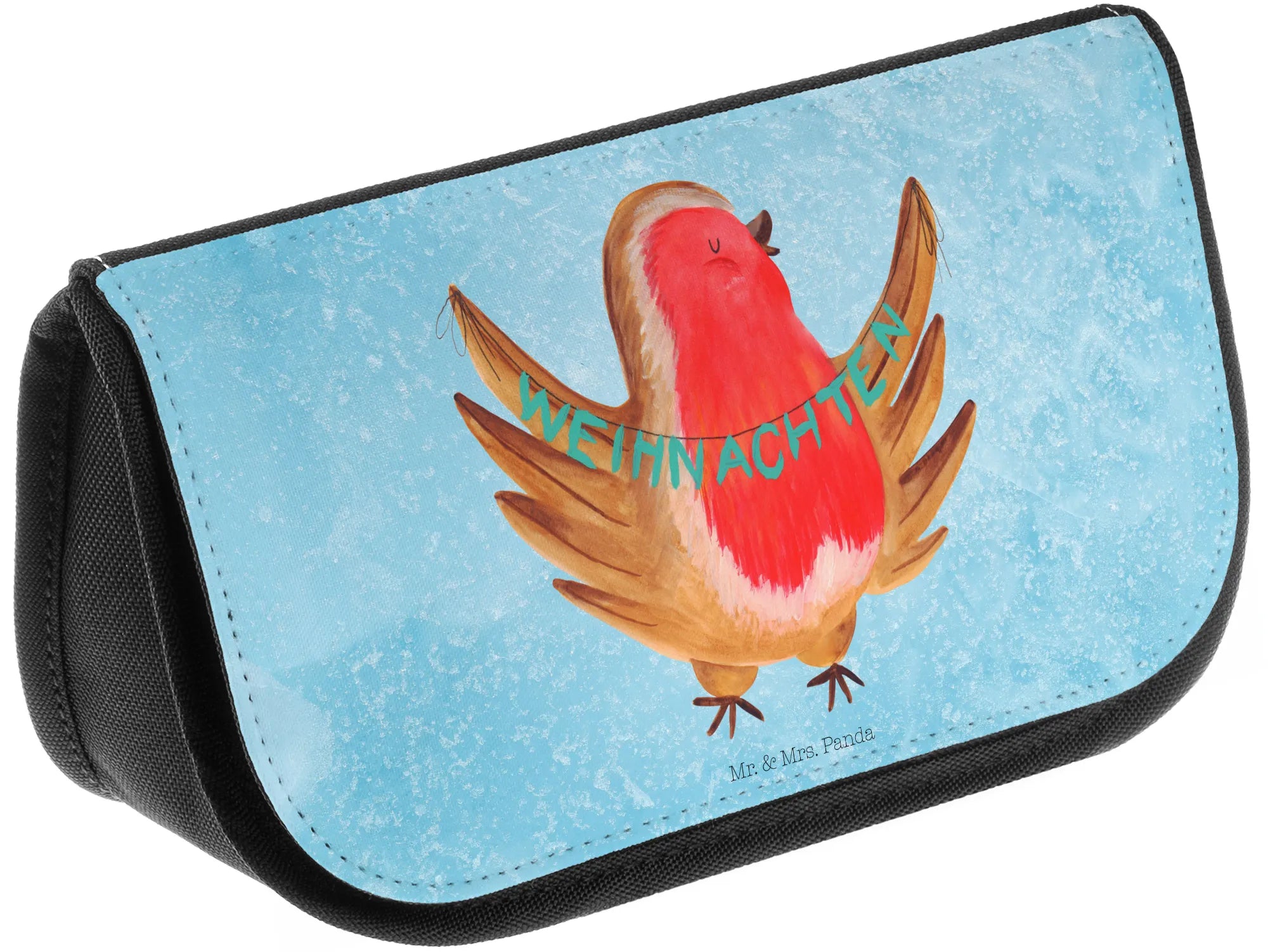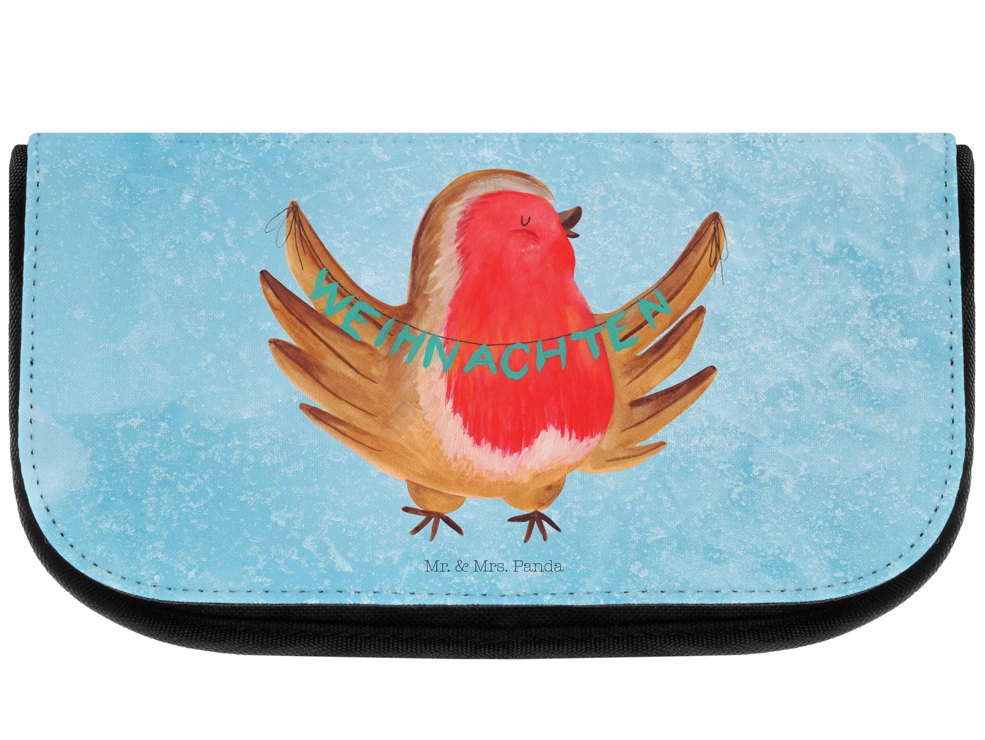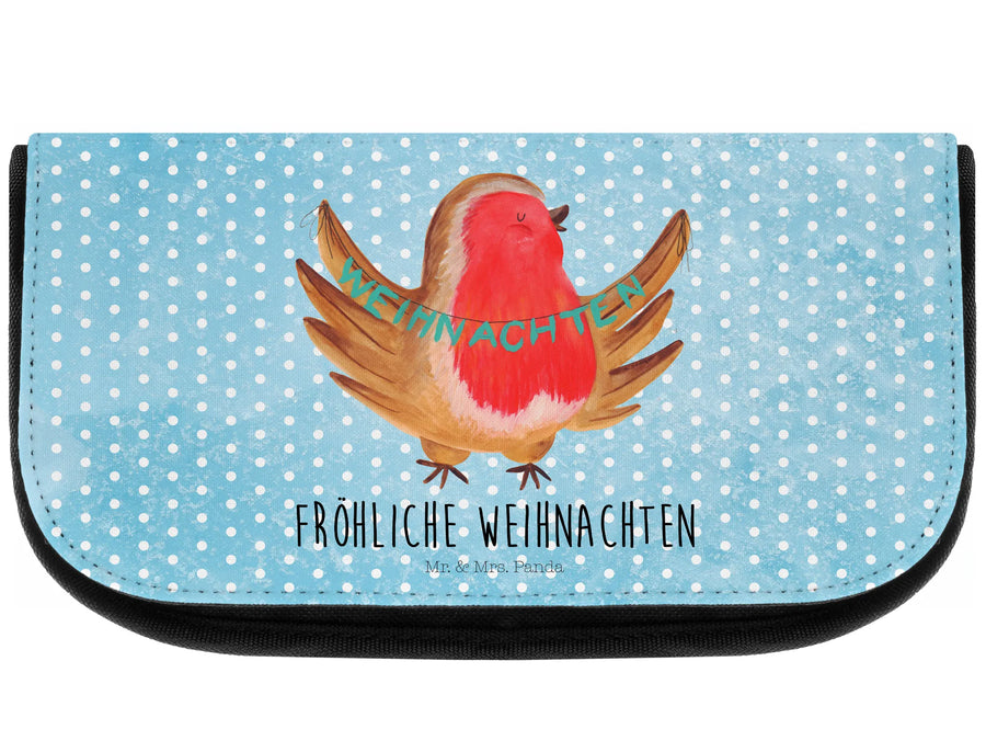 Kosmetiktasche Rotkehlchen Weihnachten - mit Spruch - Eisblau