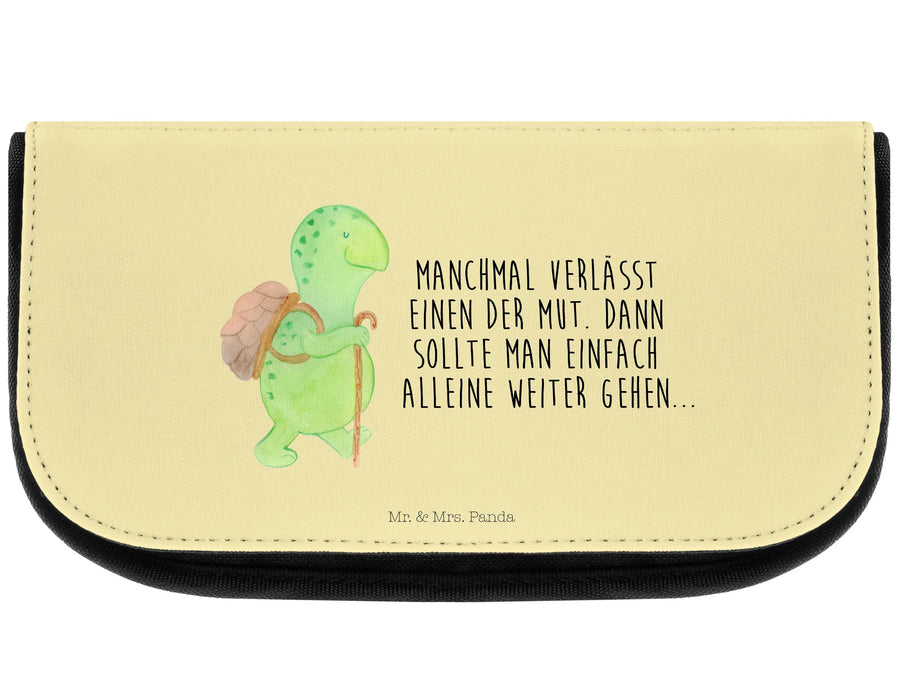 Kosmetiktasche Schildkröte Wanderer - mit Spruch - Gelb Pastell