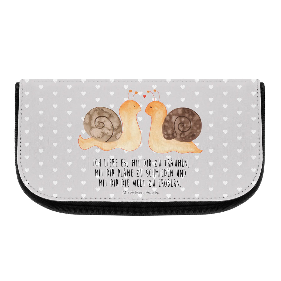 Die Kosmetiktasche "Schnecken Liebe" aus der liebevollen Kollektion von Mr. & Mrs. Panda ist das perfekte Geschenk für Deine Liebsten, die sich gerne um ihre Schönheit kümmern! Diese zauberhafte Schminktasche verbindet Funktionalität mit einem romantischen Design, das Herzen höher schlagen lässt. Mit dem charmanten Motiv von zwei stilisierten Schnecken, die sich liebevoll gegenüberstehen und zwischen denen kleine Herzen schweben, strahlt diese Kosmetiktasche pure Liebe aus.