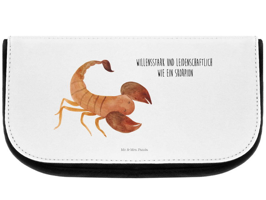 Die Kosmetiktasche ist aus strapazierfähiger Kunstfaser gefertigt und wird dir lange Freude bereiten. Pflegeleicht lässt sie sich ganz einfach mit einem feuchten Tuch reinigen. Verwöhne dich selbst oder anderen mit einem Geschenk, das nicht nur hübsch, sondern auch nützlich ist. Die Kosmetiktasche mit dem Skorpionsmotiv von Mr. & Mrs. Panda ist die perfekte Wahl für alle, die lieben und gelebt werden wollen!
