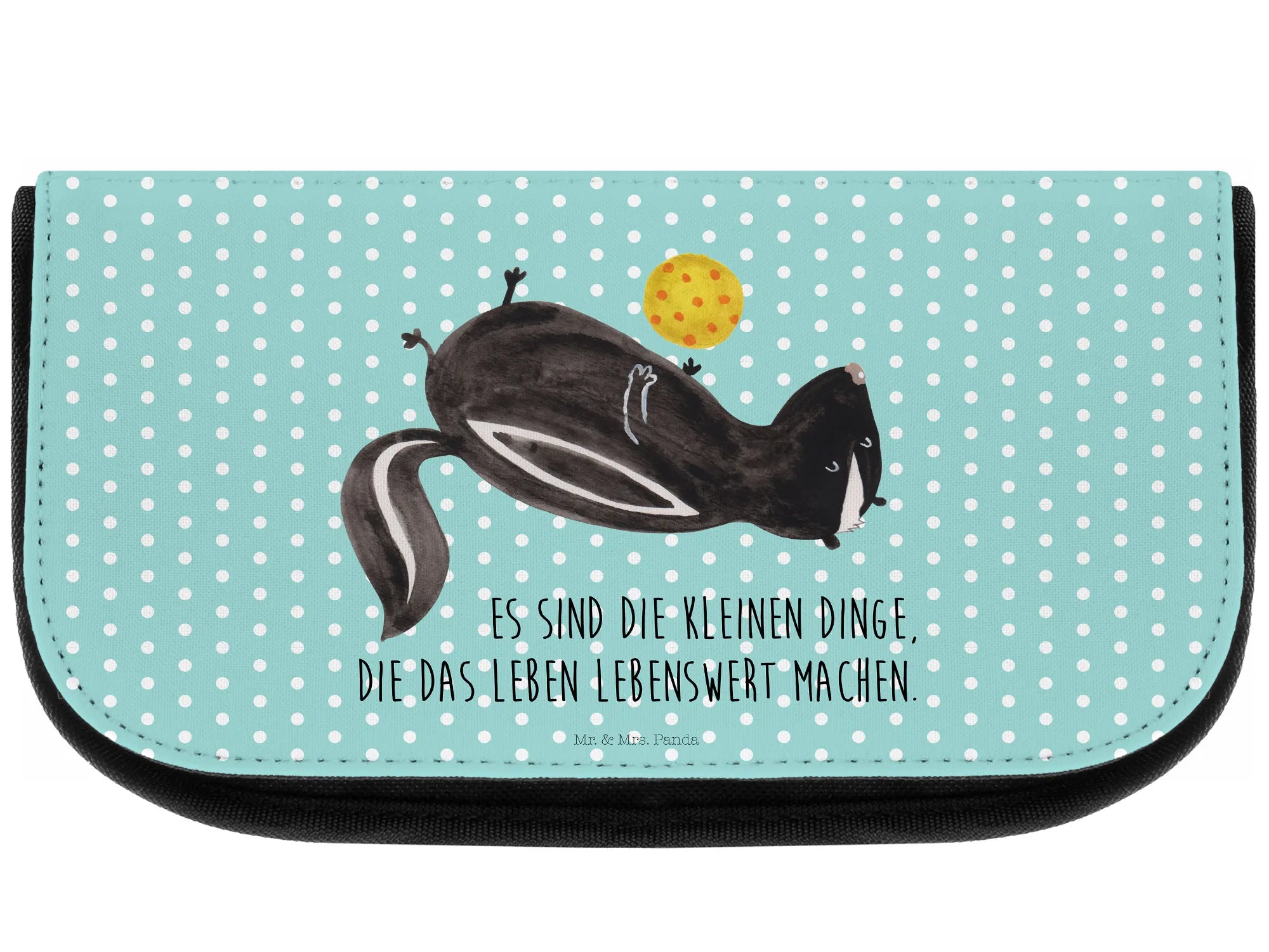 Entdecke die perfekte Kosmetiktasche aus der Stinktier-Kollektion von Mr. & Mrs. Panda! Diese schicke Schminktasche mit dem süßen Motiv des fröhlichen Stinktieres, das lebhaft mit einem Ball spielt, ist nicht nur ein praktisches Accessoire, sondern auch ein echter Hingucker. Mit einem einzigartigen Aquarell-Design bringt sie gute Laune in jede Tasche.