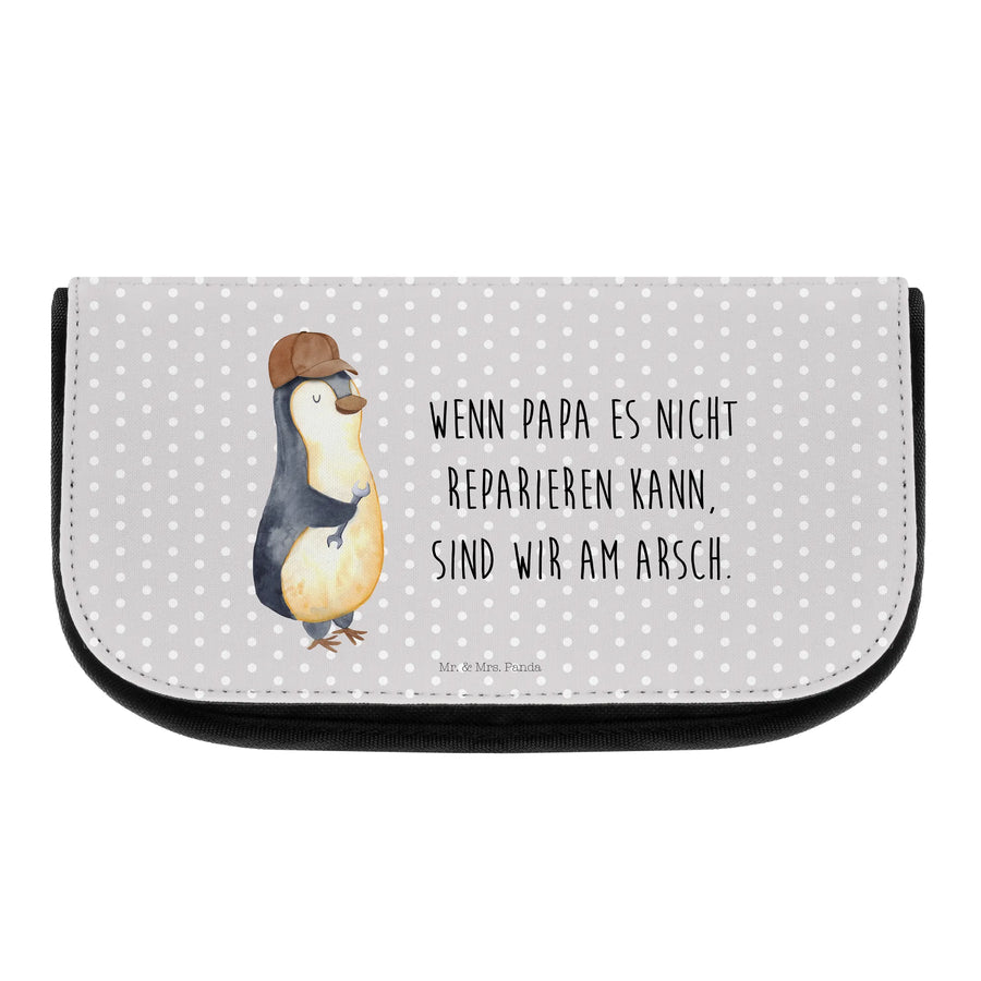 Gezeichnet im typischen Aquarellstil von Mrs. Panda, ziert die Frontseite der Tasche ein sympathischer Pinguin in einer coolen Pose, der ganz entschlossen mit seinem Schraubenschlüssel die Dinge repariert. Genau wie Papa! Mit einem Maß von 220 mm x 130 mm x 70 mm ist die Kosmetiktasche besonders handlich und bietet genug Platz für all deine Beautyprodukte und Schminke.