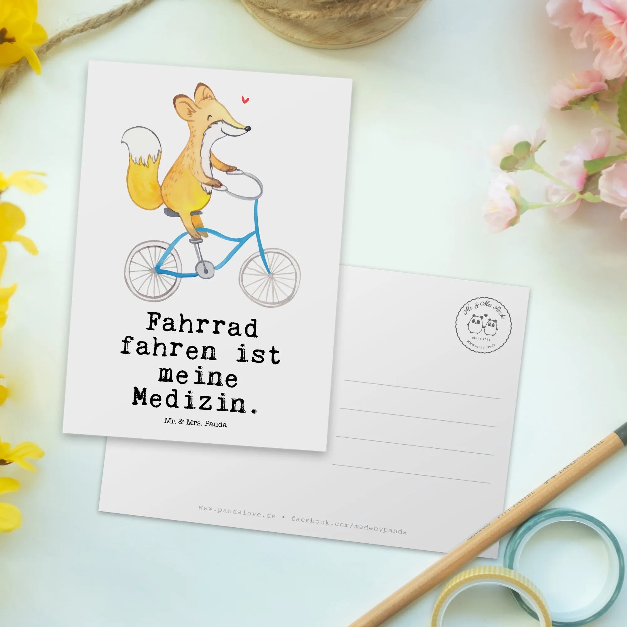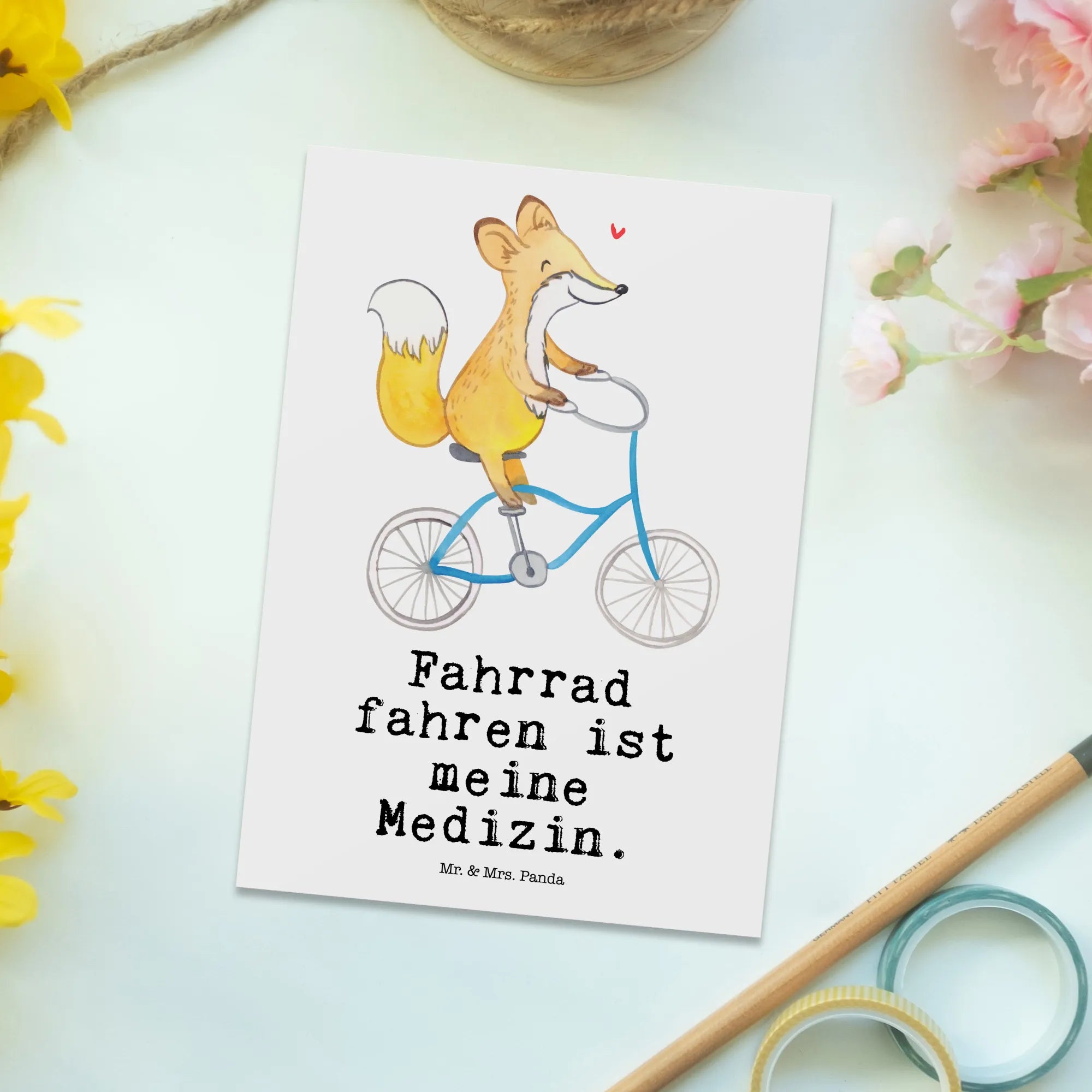 Die wunderschöne Postkarte von Mr. & Mrs. Panda mit dem Motiv "Fuchs Fahrrad fahren ist meine Medizin" ist das perfekte Geschenk für jeden Sportbegeisterten und Hobbyfan. Diese einzigartige Karte ist nicht nur ein echter Blickfang, sondern auch eine liebevolle Geste, um deinen Freunden und Familie zu zeigen, dass du an sie denkst. Egal, ob zum Geburtstag, als Einladung oder als Dankeskarte – diese Postkarte passt zu jeder Gelegenheit und verbreitet Freude!