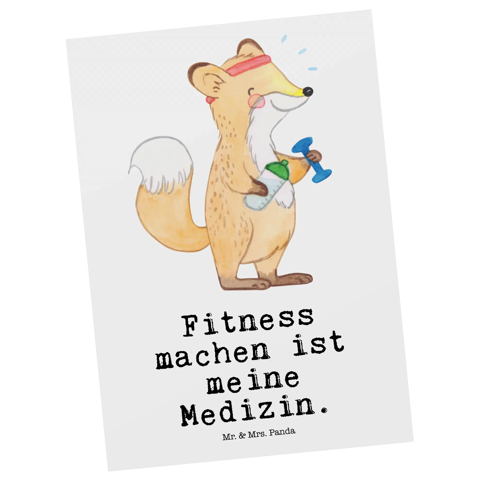 Die Postkarte "Fuchs Fitness Medizin" von Mr. & Mrs. Panda ist das perfekte Geschenk für alle Fitness-Enthusiasten und Sportler, die ihr Herz für den Sport schlagen lassen. Mit ihrem charmanten Design eines süßen Fuchses, der eifrig mit einer Trinkflasche in der einen und einer Hantel in der anderen Hand trainiert, bringt diese Karte nicht nur ein Lächeln auf die Lippen, sondern motiviert auch, aktiv zu bleiben. Der witzige Slogan "Fitness machen ist meine Medizin" spricht jeden an, der den Sport als Lebenselixier betrachtet und zeigt, dass Fitness nicht nur eine Passion, sondern auch eine Lebensweise ist. Egal ob als Geburtstagskarte, Dankeskarte oder einfach als kleine Aufmerksamkeit für einen lieben Freund – diese Karten eignen sich für jeden besonderen Anlass.