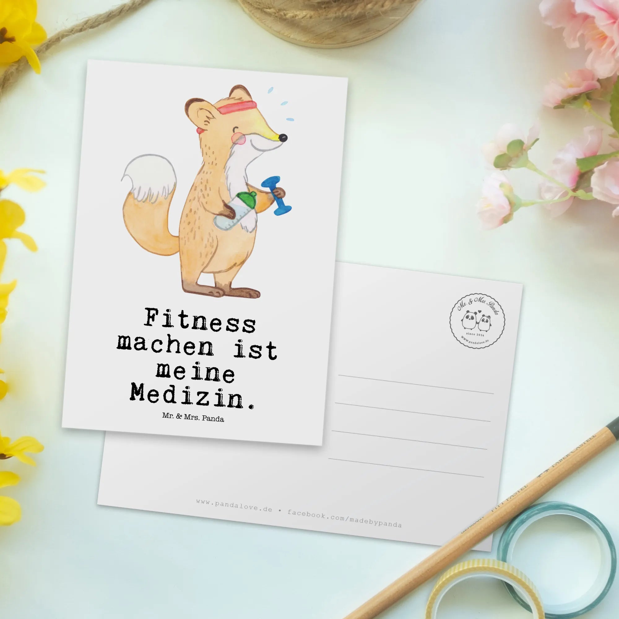 Wenn du also auf der Suche nach einem einzigartigen Geschenk für einen leidenschaftlichen Sportler, Verwandten oder Freund bist, dann ist die "Fuchs Fitness Medizin" Postkarte von Mr. & Mrs. Panda genau das Richtige! Lass die Begeisterung für den Sport sprießen und teile positive Vibes mit dieser charmanten und durchdachten Karte! Ob im Fitnessstudio, im Sportclub oder während des Sporttreibens – diese Karte wird immer als motivierender Begleiter geschätzt werden.