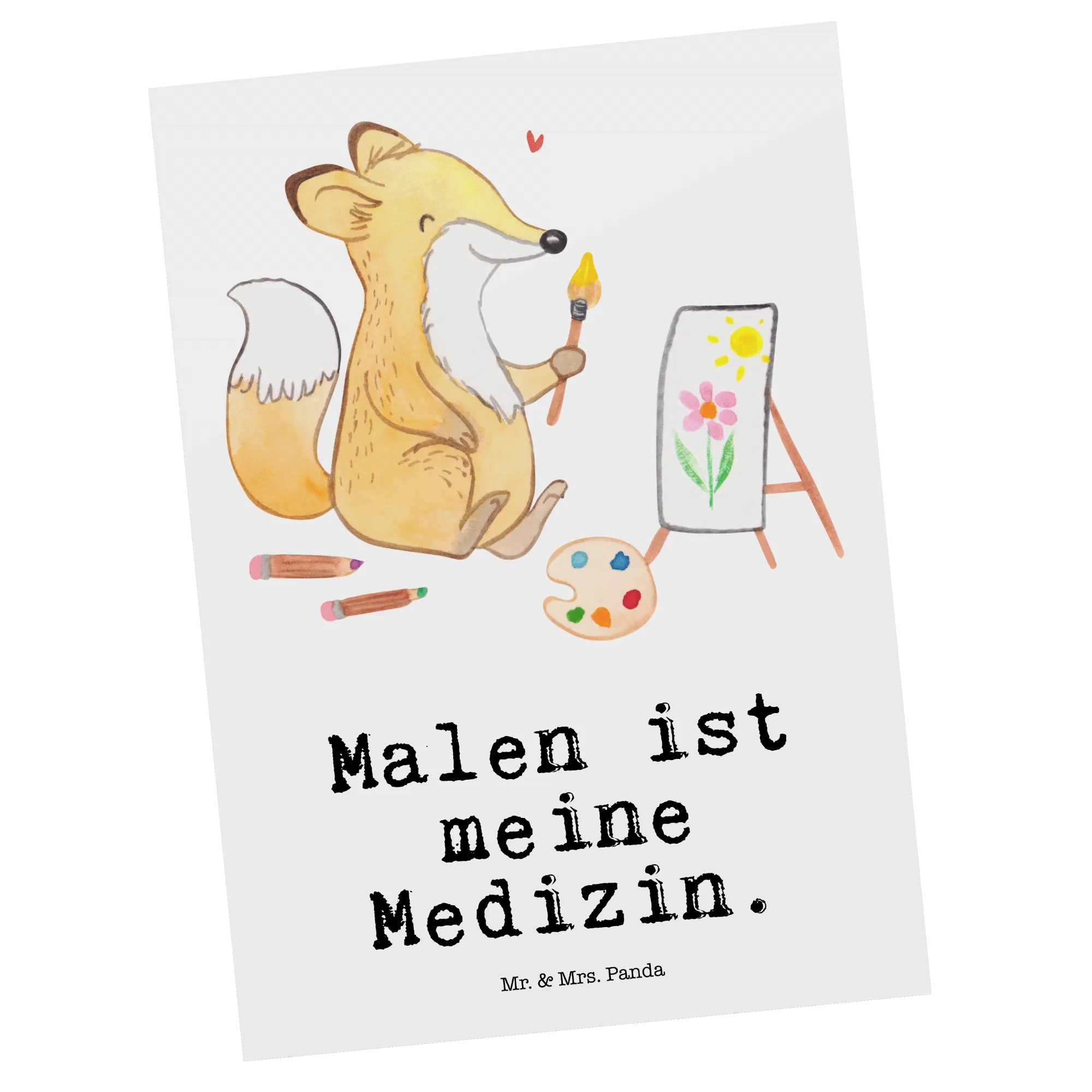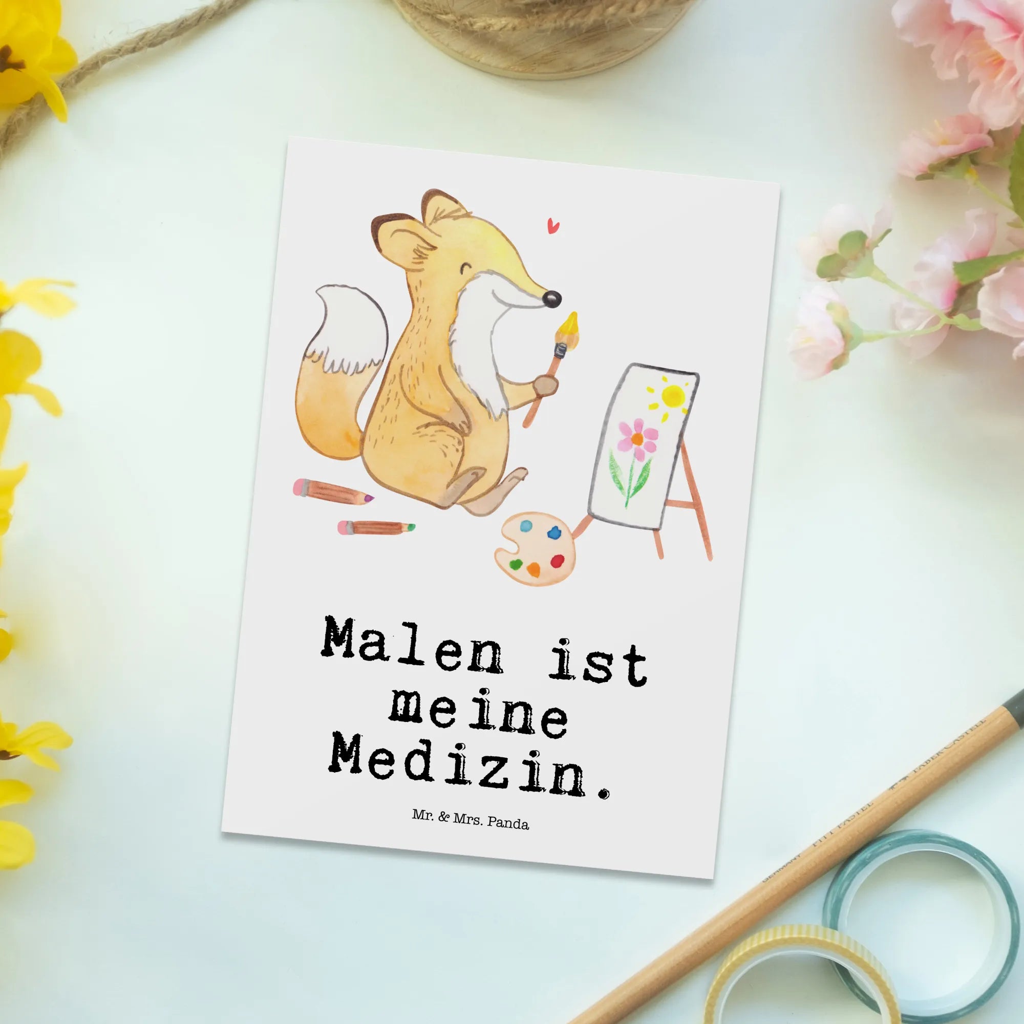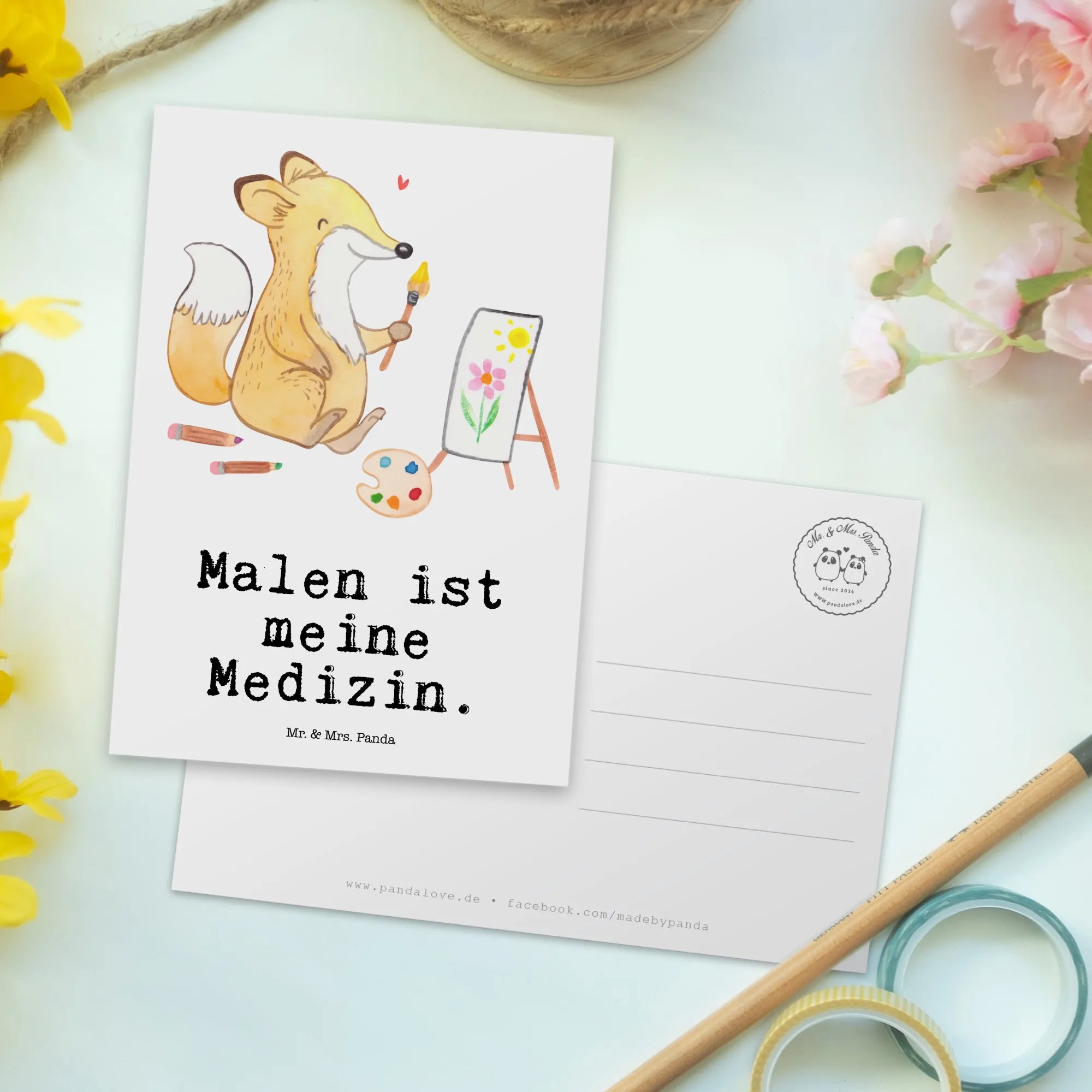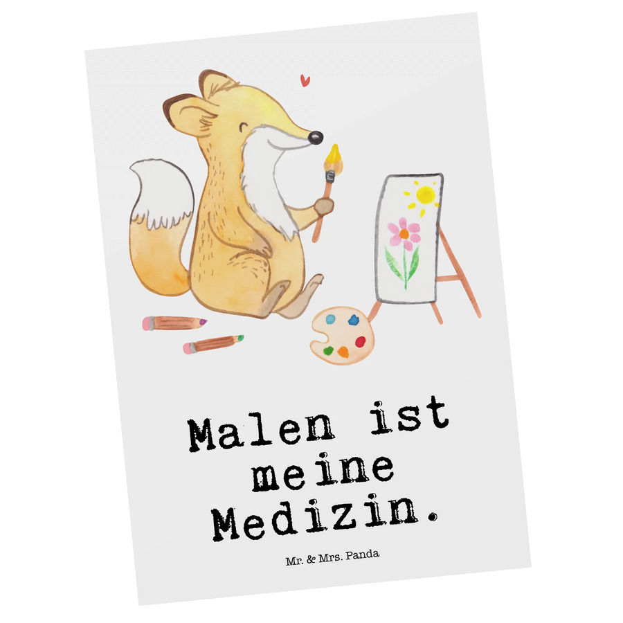 Die Postkarte "Fuchs - Malen ist meine Medizin" aus der beliebten Hobby & Sport Kollektion von Mr. & Mrs. Panda ist das perfekte Geschenk für alle, die das Malen lieben! Ob zum Geburtstag, als Dankeskarte oder einfach nur so, diese Karte bringt Freude und Inspiration in jede kreative Seele. Der süße Fuchs, der an einer Staffelei sitzt und sein Meisterwerk erschafft, ist nicht nur ein niedliches Motiv, sondern auch eine liebevolle Erinnerung daran, wie wichtig es ist, sich Zeit für seine Hobbys zu nehmen und die eigenen kreativen Talente zu entdecken.