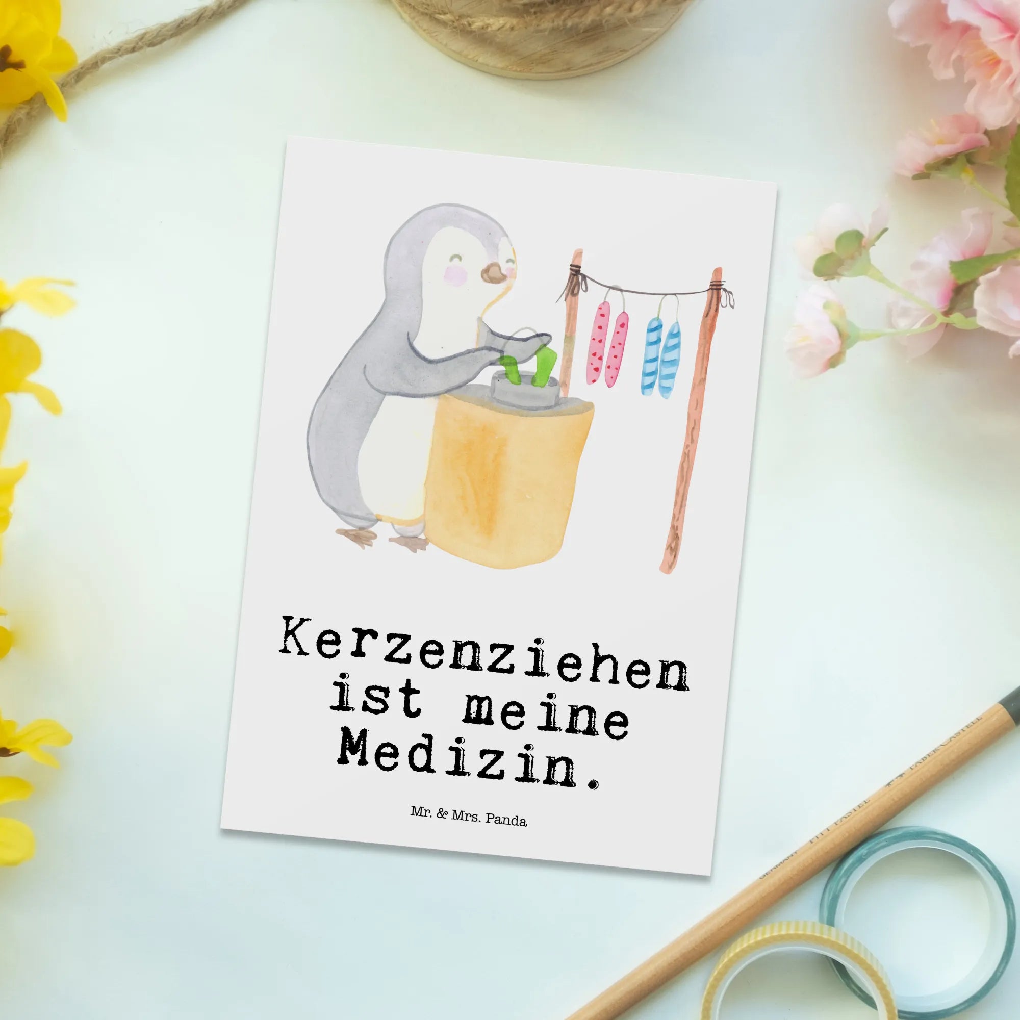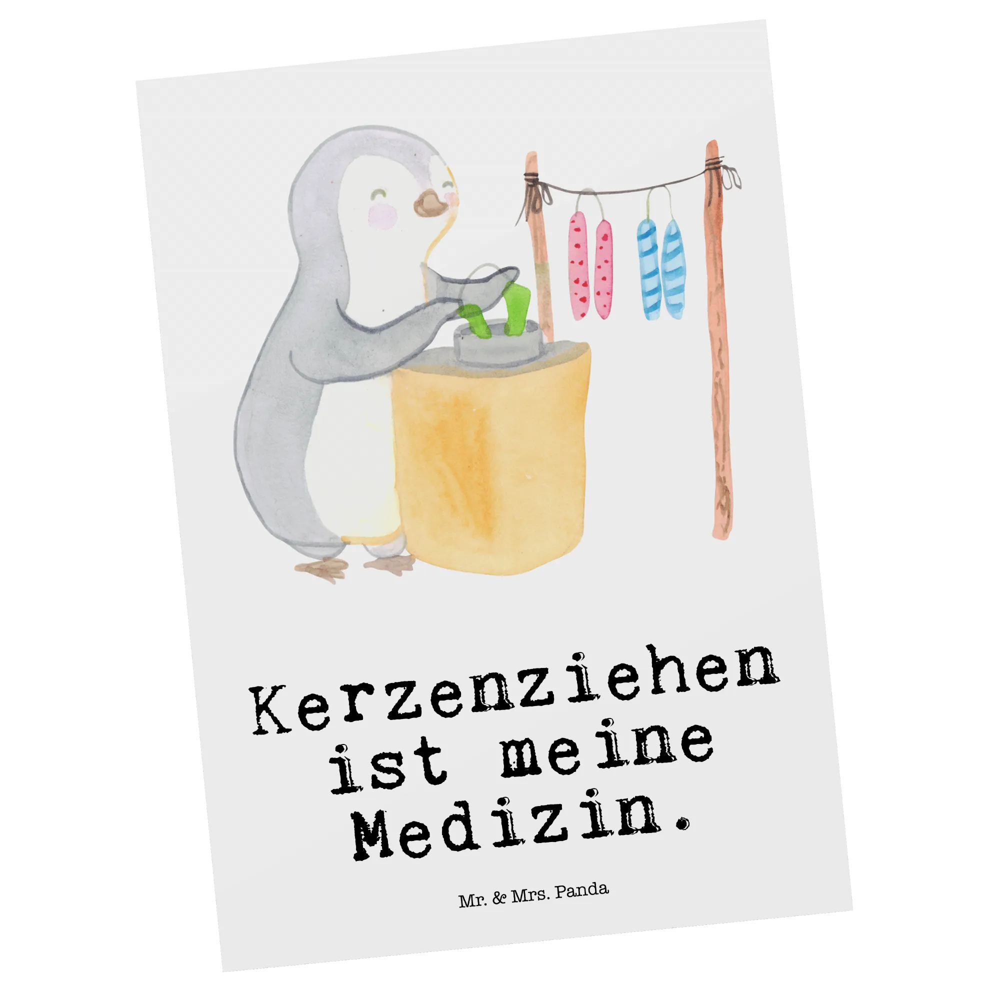 Postkarte Pinguin Kerzenziehen