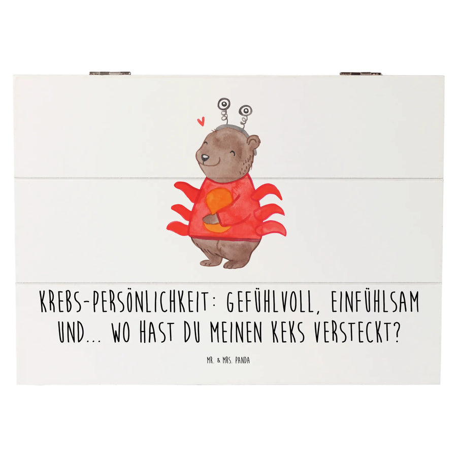 Die wunderschöne Holzkiste Krebs von Mr. & Mrs. Panda ist nicht nur eine Erinnerungskiste, sondern auch das perfekte Geschenk für alle, die an Astrologie und Sternzeichen glauben. Diese zauberhafte Kiste ist liebevoll mit dem Motto "Krebs-Persönlichkeit: Gefühlvoll, einfühlsam und... wo hast du meinen Keks versteckt?" gestaltet.