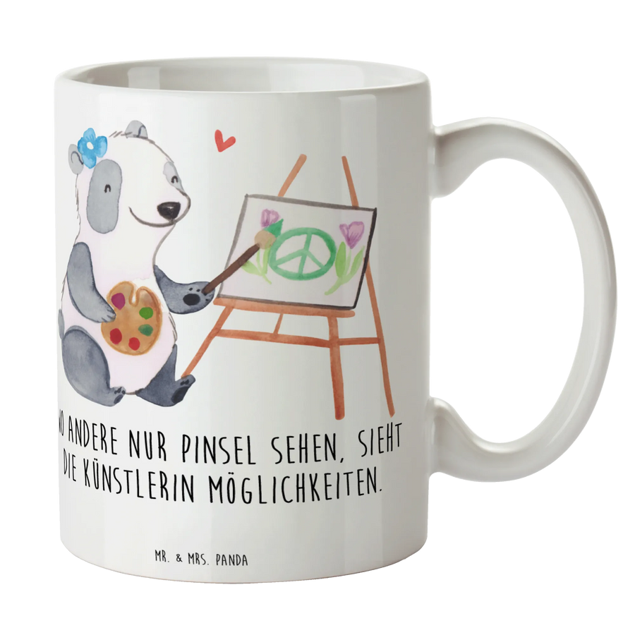 Entdecke die perfekte Kaffeetasse für kreative Köpfe und passionierte Künstlerinnen – die Künstlerin Tasse von Mr. & Mrs. Panda! Diese wunderschöne spülmaschinenfeste Keramiktasse mit dem Slogan "Wo andere nur Pinsel sehen, sieht die Künstlerin Möglichkeiten" ist mehr als nur ein Becher für Kaffee oder Tee; sie ist ein Ausdruck Deiner Leidenschaft für die Kunst. Mit ihren 325 ml Fassungsvermögen ist die Tasse ideal für den täglichen Genuss von Deinem Lieblingsgetränk, während Du Deinen kreativen Gedanken freien Lauf lässt.