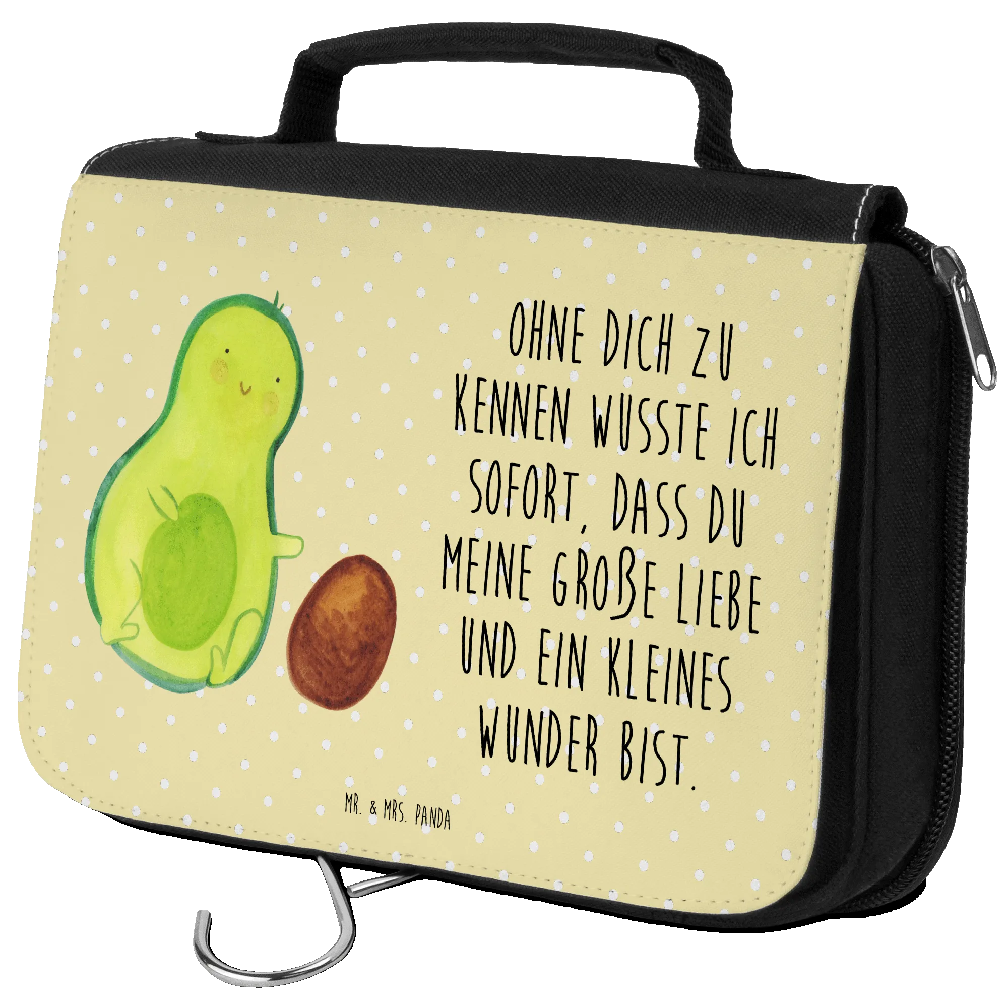 Egal ob du ihn in deinem Koffer oder Rucksack verstauen möchtest, dieser platzsparende Kulturbeutel ist immer dabei! Die süße, handgezeichnete Avocado auf dem Kulturbeutel bringt ein Stück Lebensfreude in deinen Alltag. Der witzige Spruch "Ohne dich zu kennen wusste ich sofort, dass du meine große Liebe und ein kleines Wunder bist" macht diesen Kulturbeutel zu einem besonderen Geschenk für werdende Mütter, zur Geburt oder einfach für die beste Freundin.
