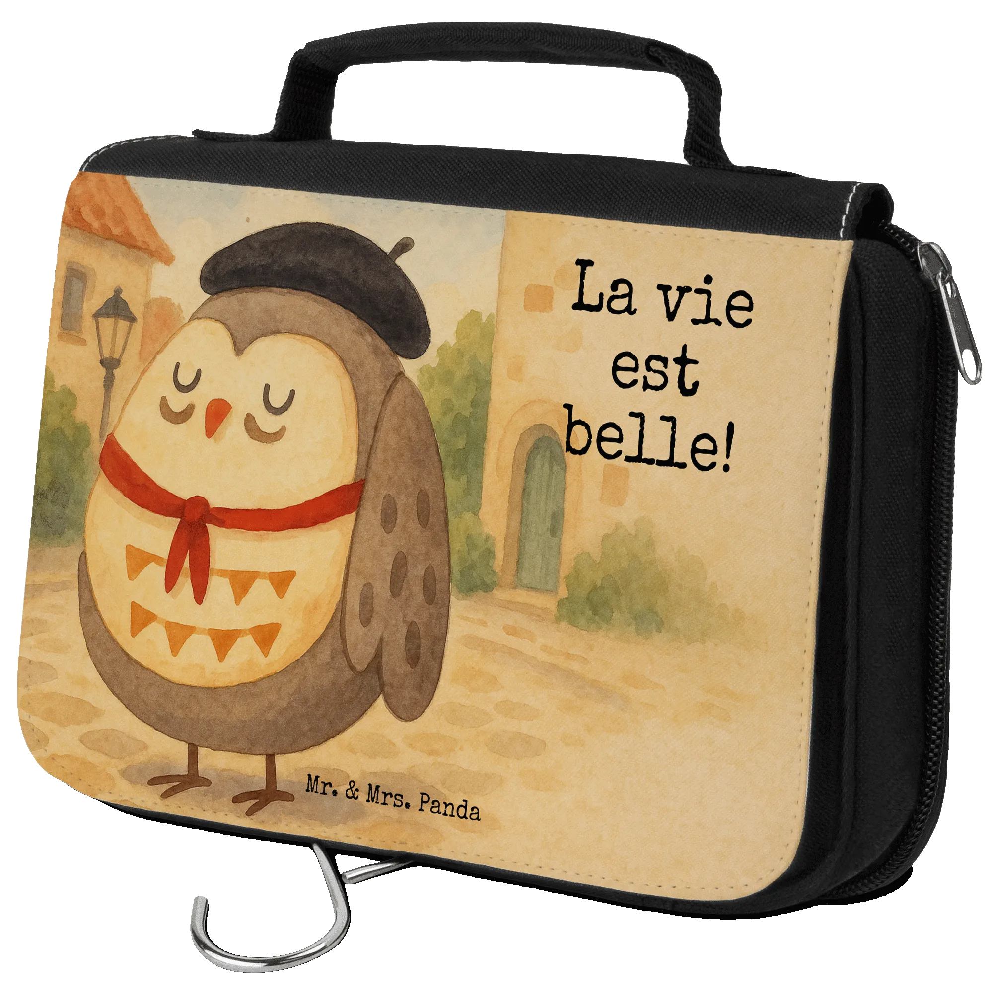 Kulturbeutel Eule Frankreich Design - mit Spruch