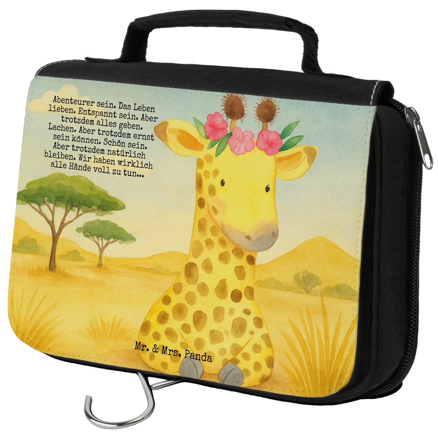 Kulturbeutel Giraffe Blumenkranz Design - mit Spruch