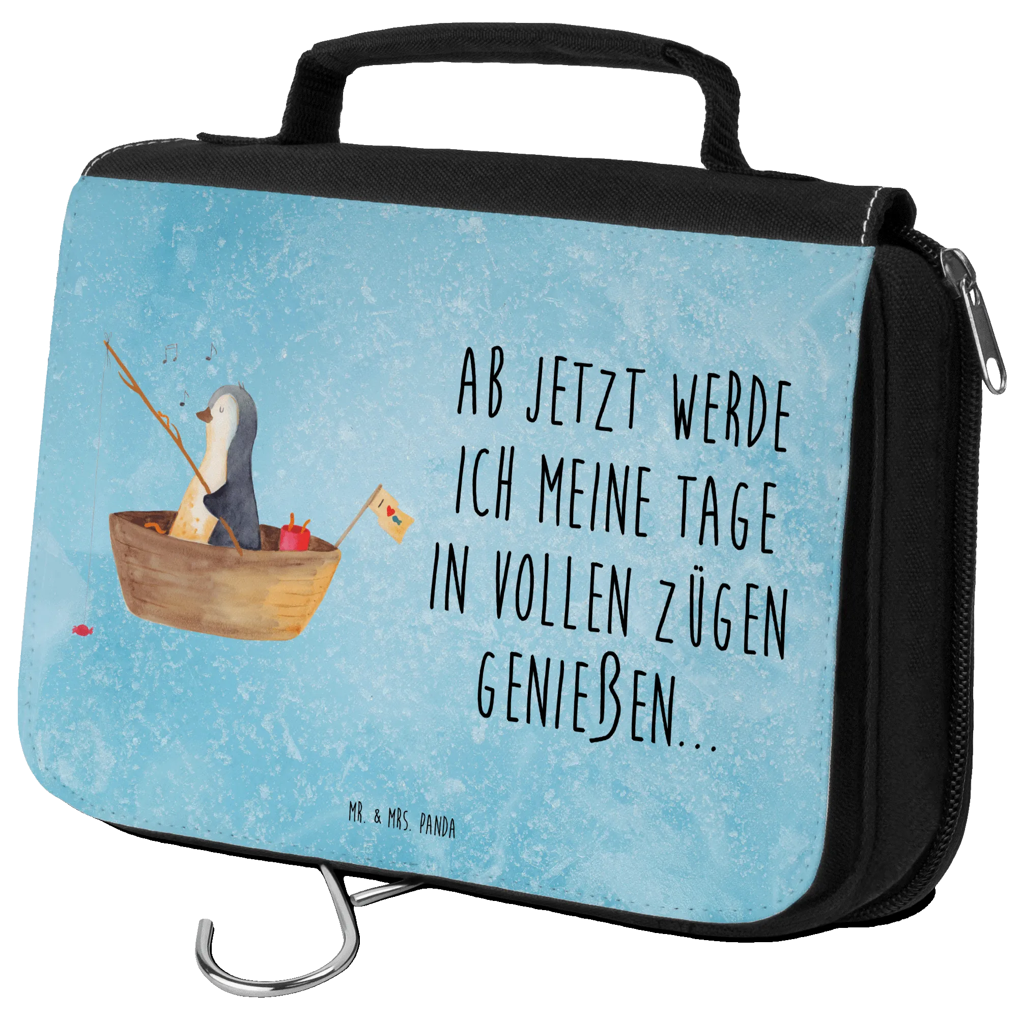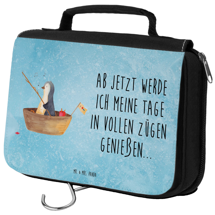 Kulturbeutel Pinguin Angelboot - mit Spruch - Eisblau