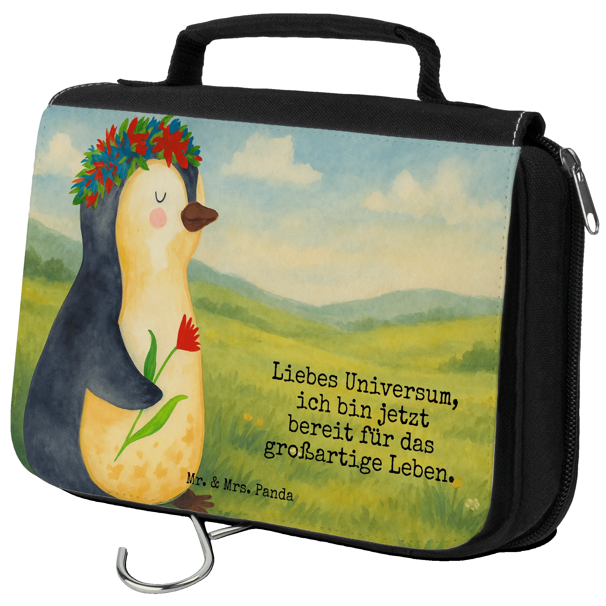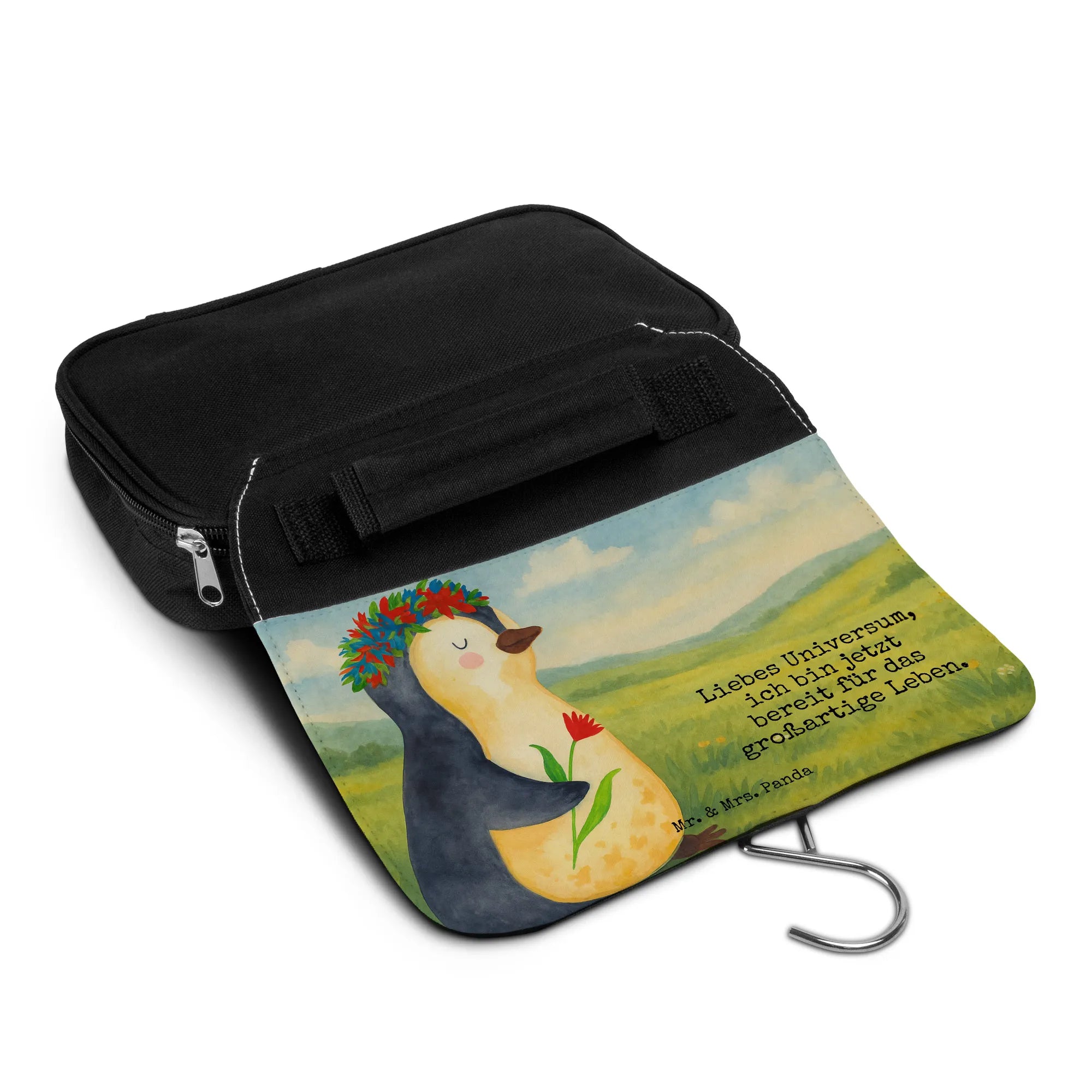 Kulturbeutel Pinguin Blumen Design - mit Spruch